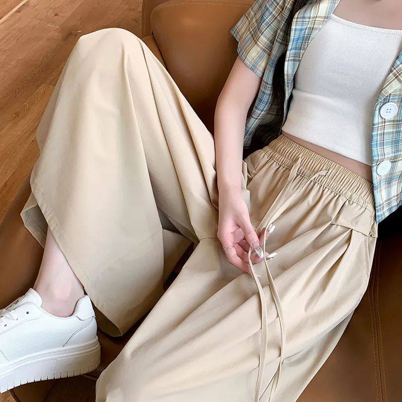 大码休闲阔腿裤女夏季新款高腰显瘦梨形宽松垂感抽绳裙裤七分裤子
