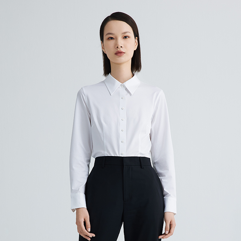【天然免烫抗皱】Degre Zero零度女士修身版长袖衬衫140s白色衬衣