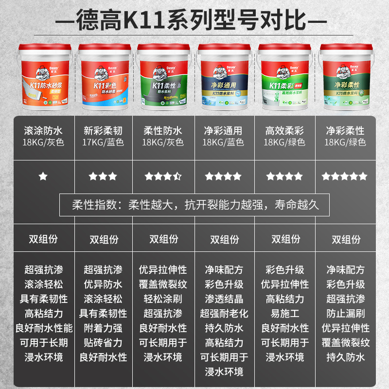 德高k11彩色防水砂浆柔性防水浆料通用型防水涂料卫生间专用刚性
