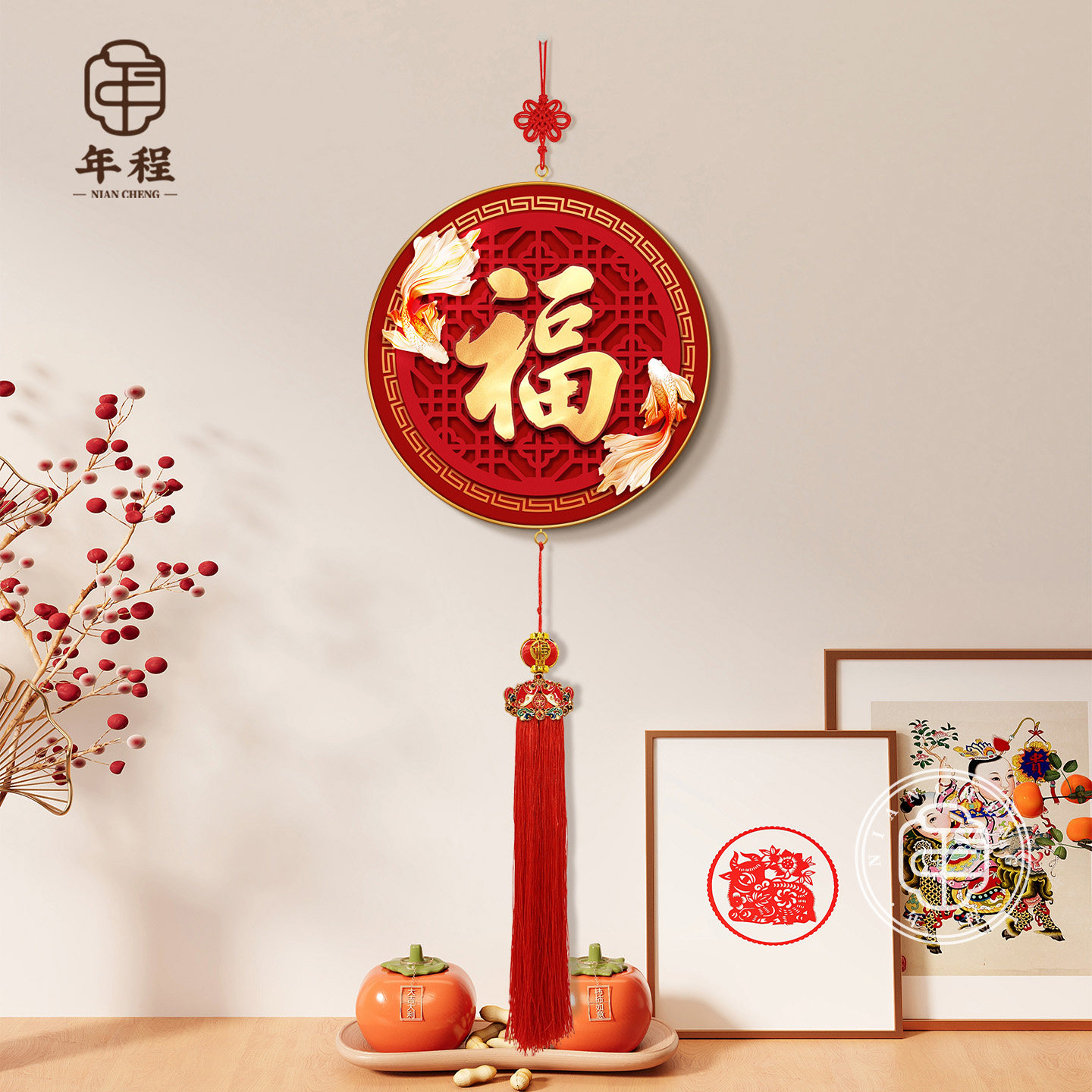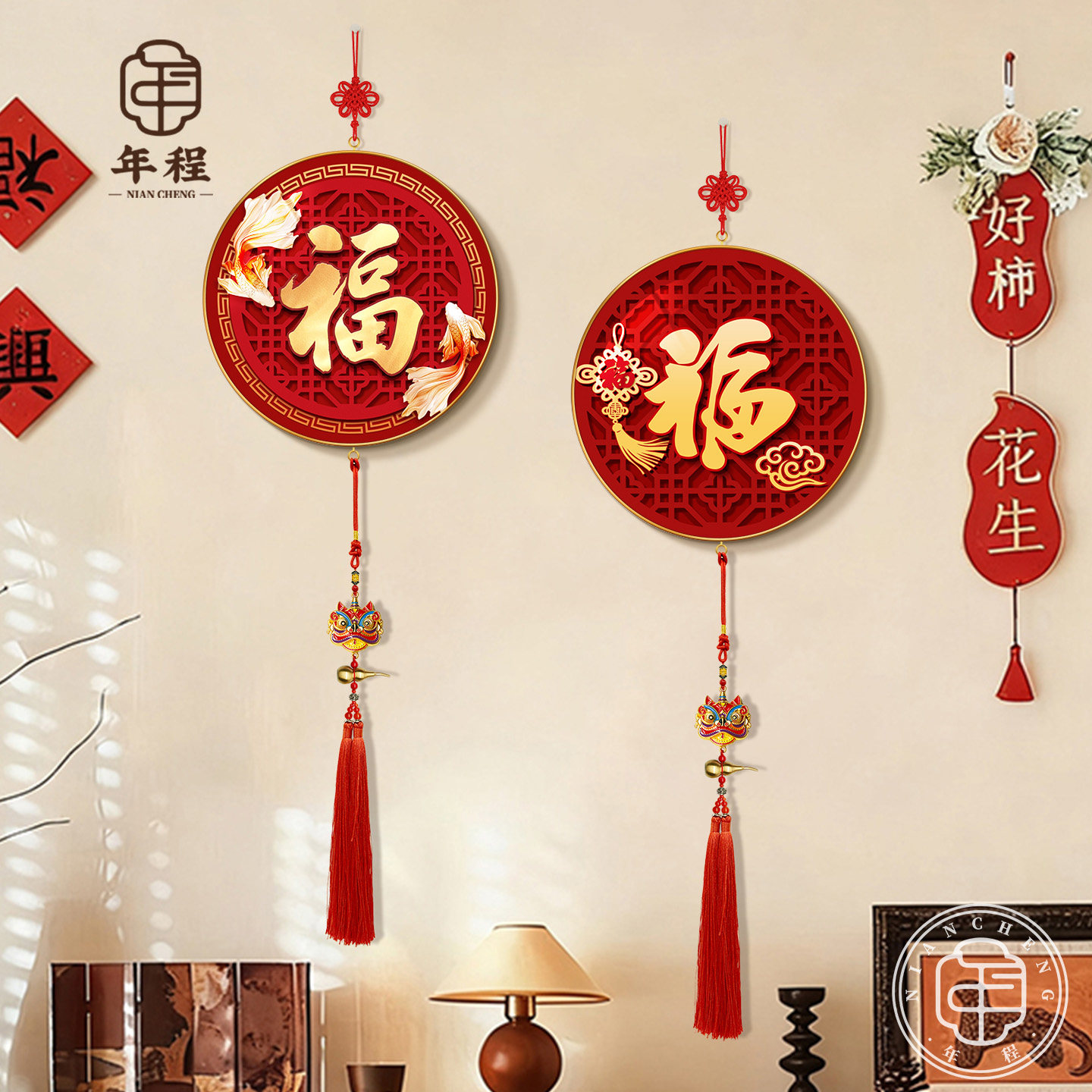 福字客厅挂画入户玄关装饰画新中式过年春节喜庆挂饰中国结挂件