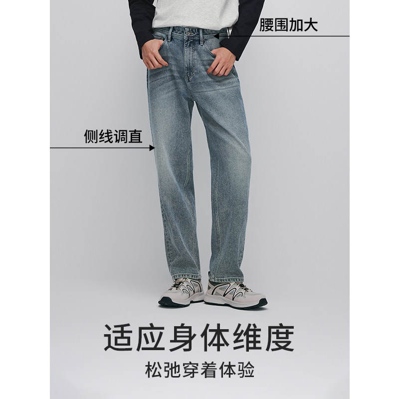 热风男士牛仔裤2025年秋季新款宽松直筒长裤时尚潮流锥型牛仔裤