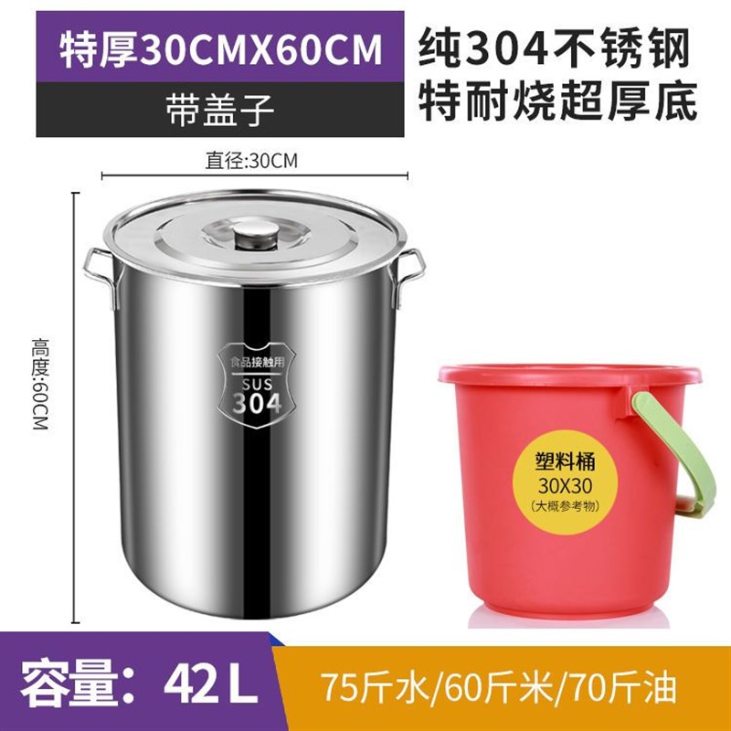 商用304不锈钢锅带盖汤锅汤y桶加厚家用油桶大容量锅不锈钢储水桶