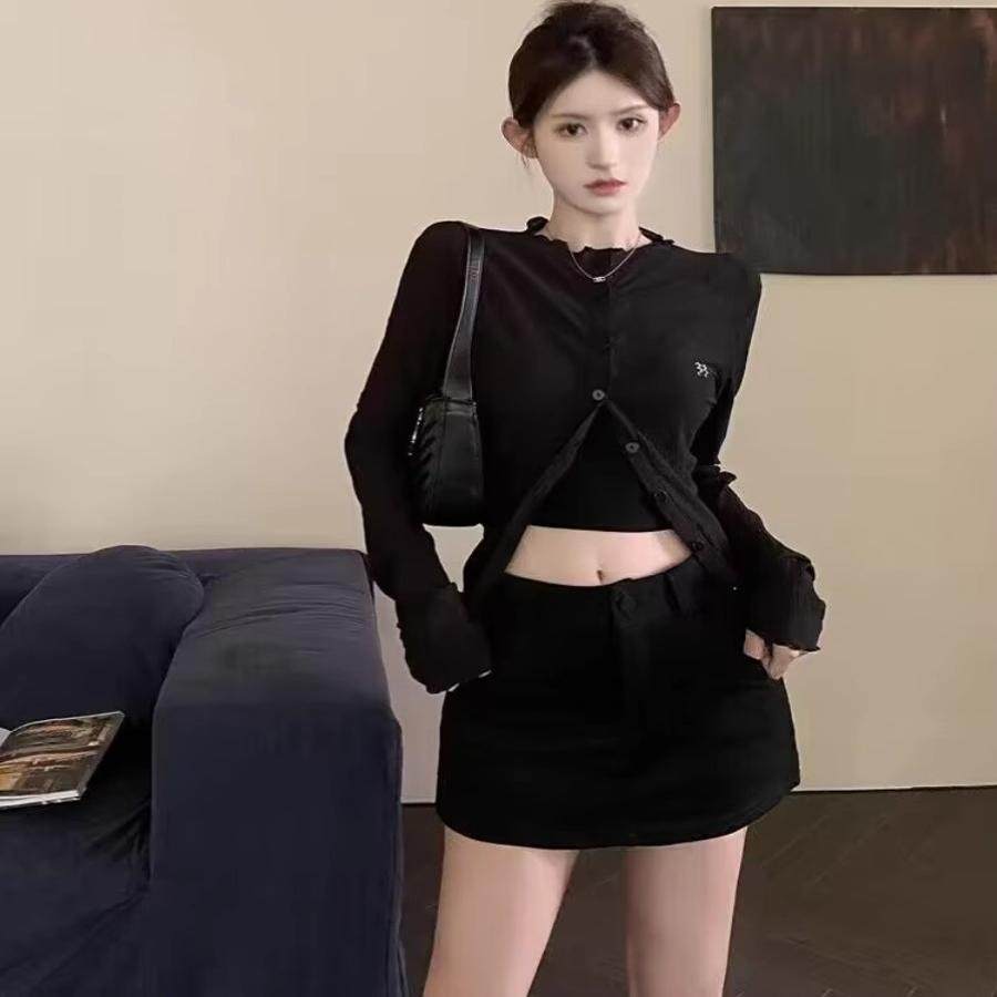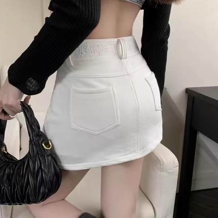 辣妹刺绣白色半身裙女秋冬2025新款高腰显瘦休闲防走光包臀短裙子
