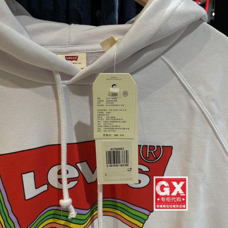 正品Levis李维斯秋新款女logo印花宽松版连帽套头卫衣A3798-0002