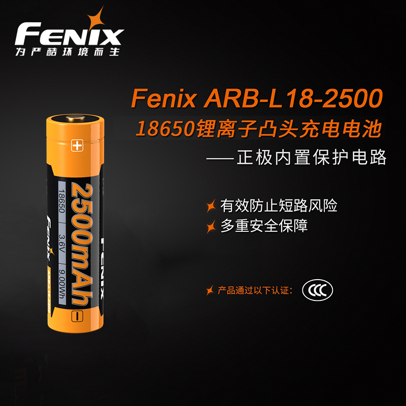 fenix菲尼克斯18650锂电池充电电池大容量3C认证强光手电筒专用