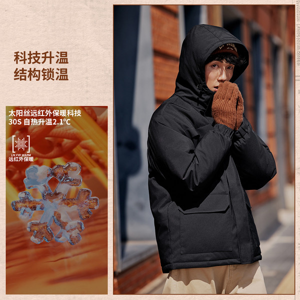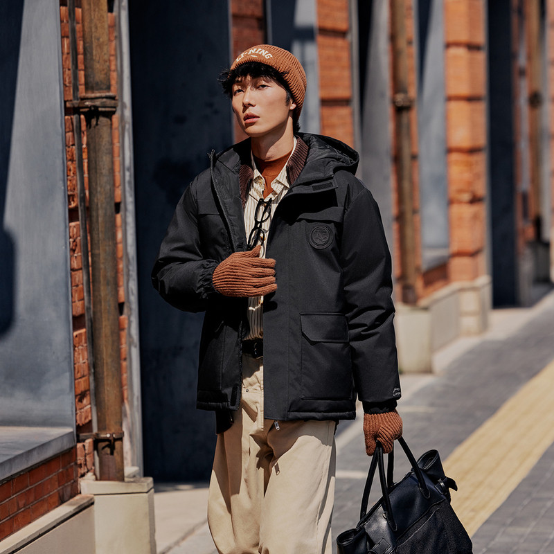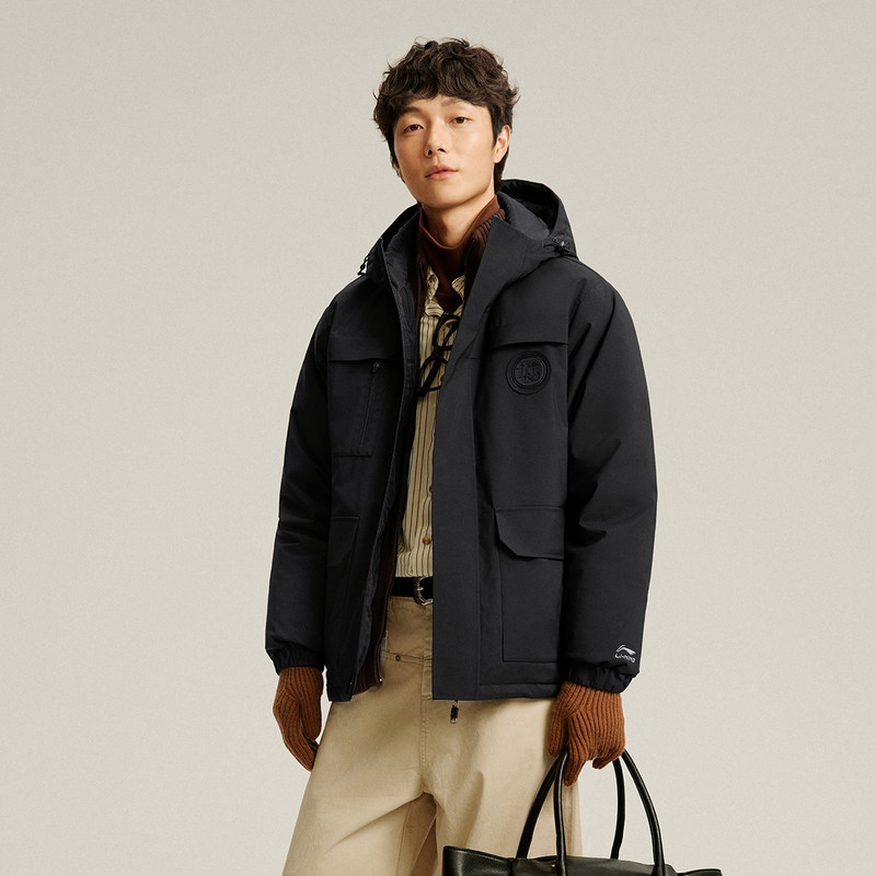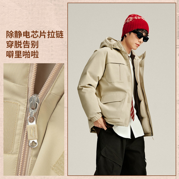 李宁航天动态保暖羽绒服男冬季新款连帽短款工装运动外套AYMV295