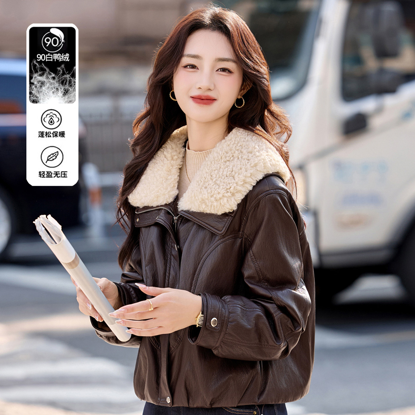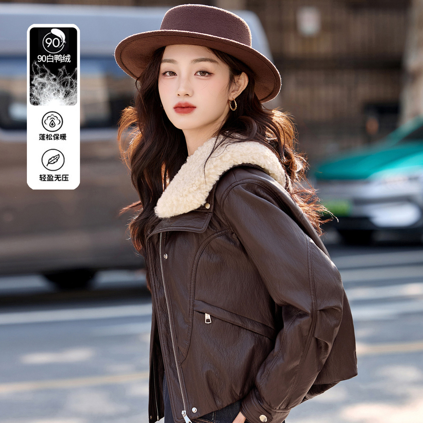 小个子短款PU皮羽绒服女2026年冬装新款白鸭绒洋气时髦免洗外套潮