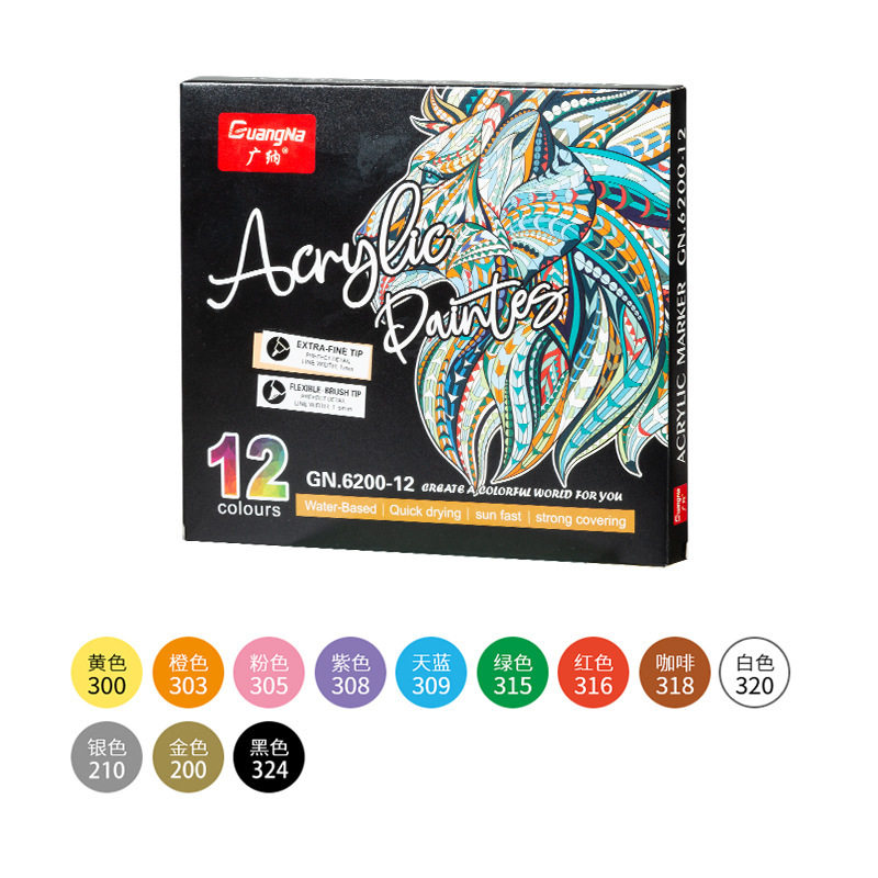 广纳6200双头丙烯马克笔粉彩画笔相册diy水性软头涂鸦水彩笔现货
