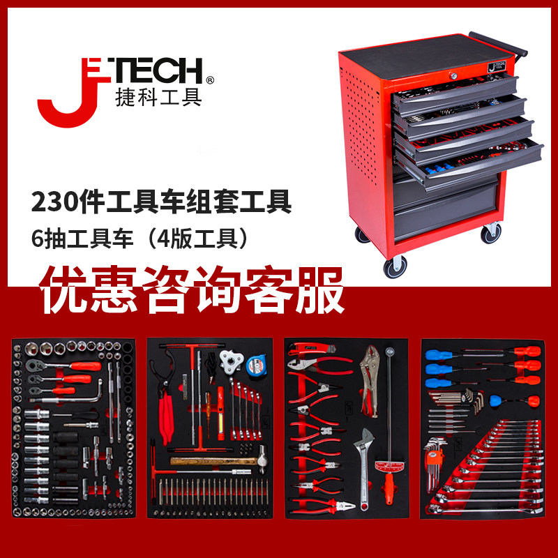 捷科工具330件套工具车整车带工具230套装扳手螺丝批汽车维修工具