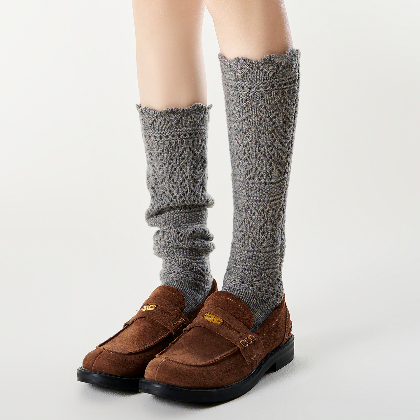 派米镂空羊毛小腿袜子女秋冬保暖复古miu系配靴子堆堆黑色长筒袜