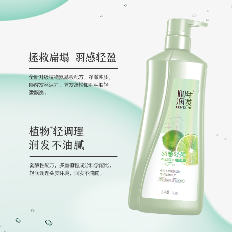 100年润发洗发水露550ml植物调理羽感轻盈控油蓬松去屑旗舰店正品