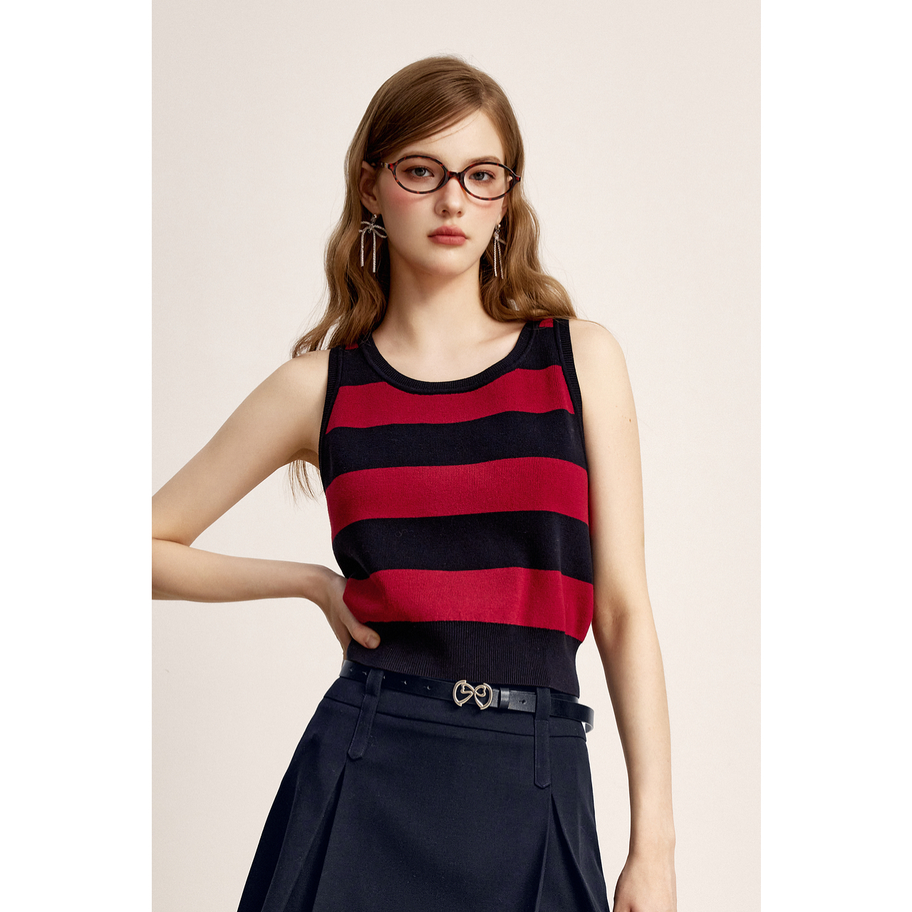 【商场同款】诗凡黎撞色圆领无袖针织背心2024冬新款女3FA132661