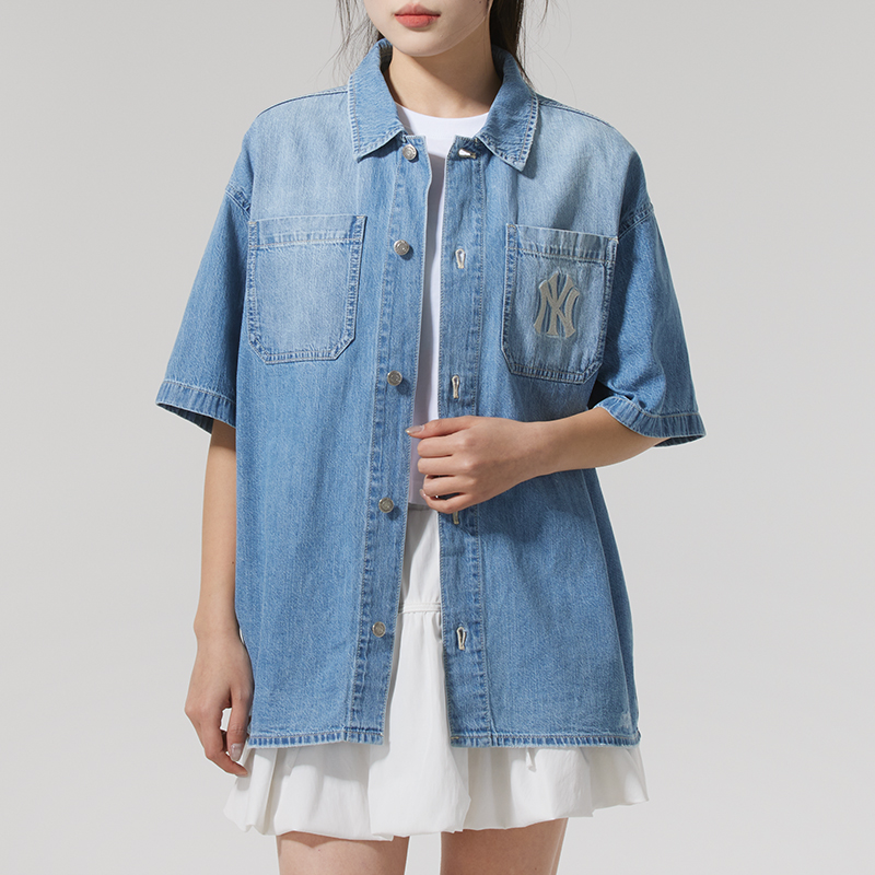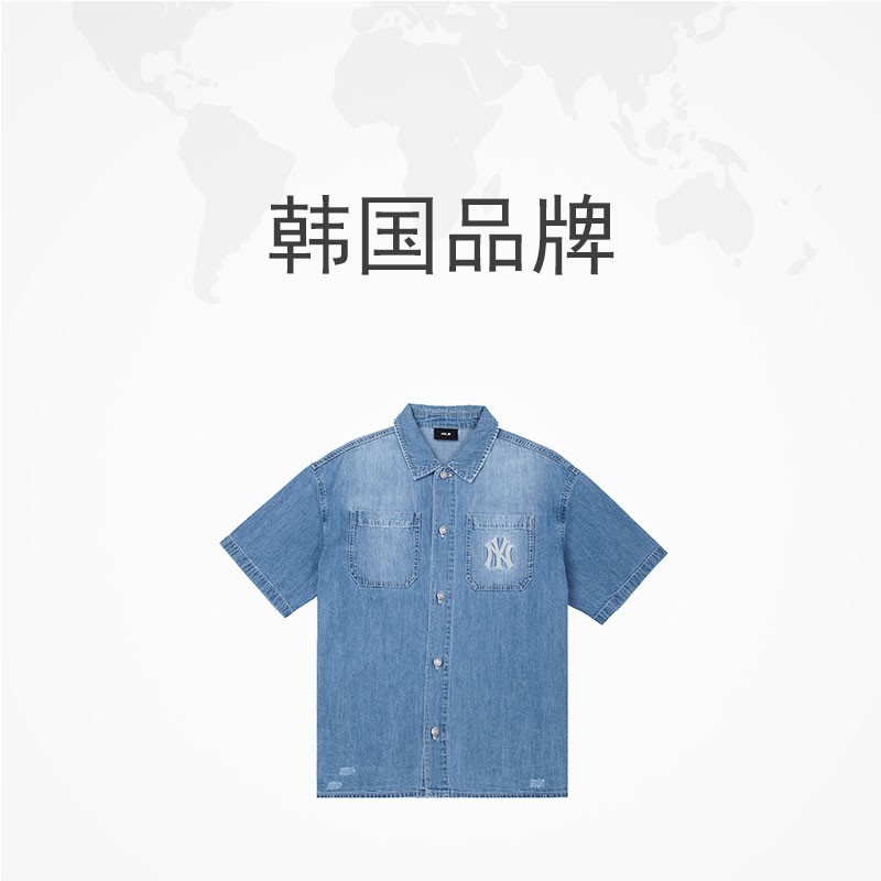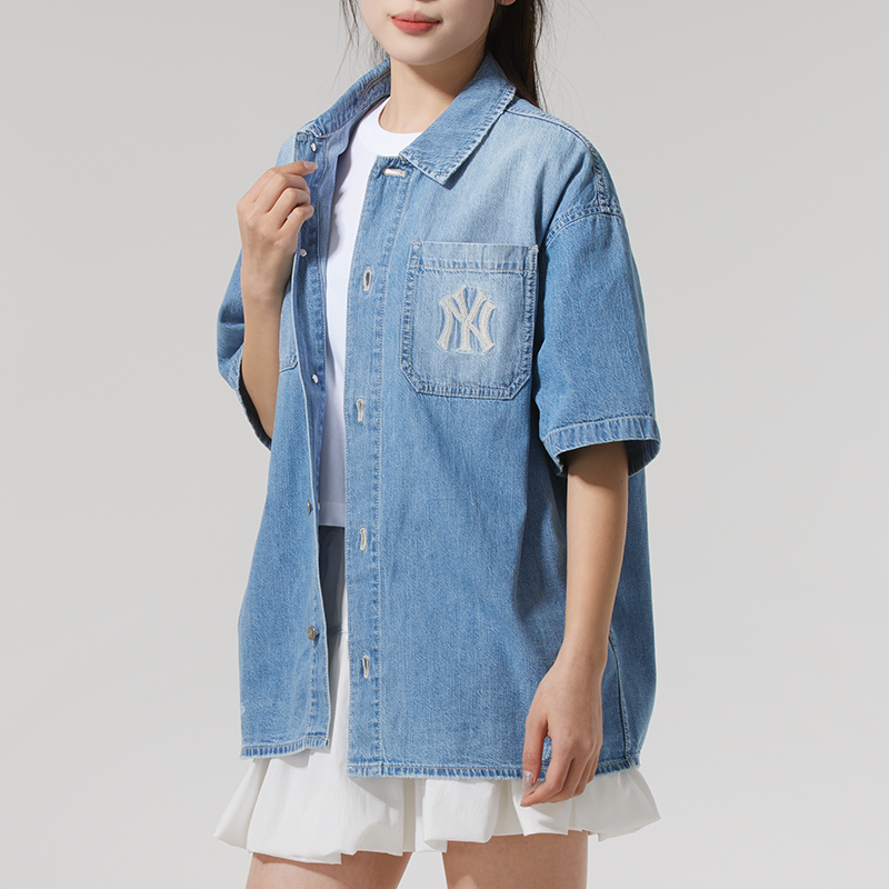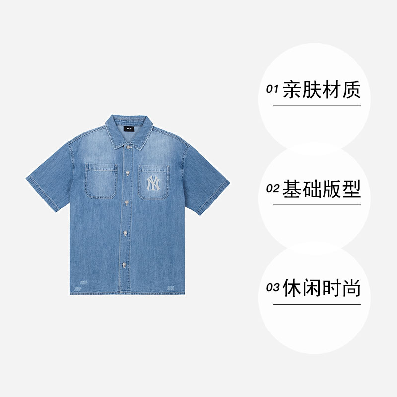 【自营】MLB衬衫短袖男女装牛仔外套翻领休闲服情侣装3ADRB0653