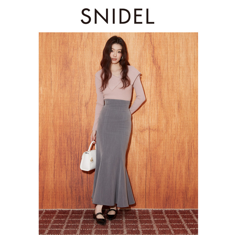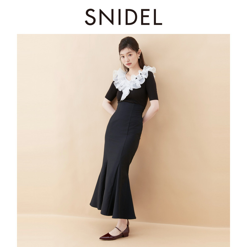 SNIDEL2025秋冬新品优雅百搭高腰修身后开叉鱼尾半身裙SWFS254127