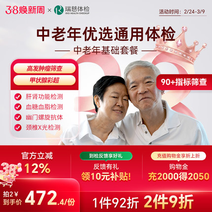 瑞慈体检卡 中老年老人肿瘤筛查套餐彩超肝肾送父母爸妈健康报告