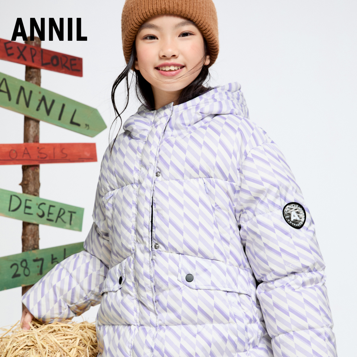 安奈儿女童装中长款连帽羽绒服2024冬季新款加厚保暖休闲外套三防