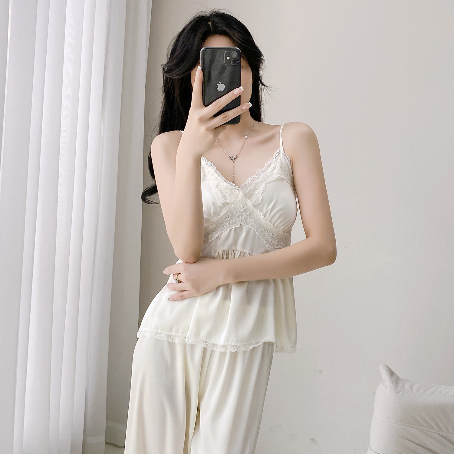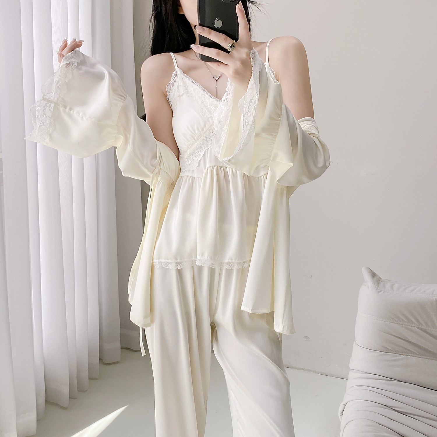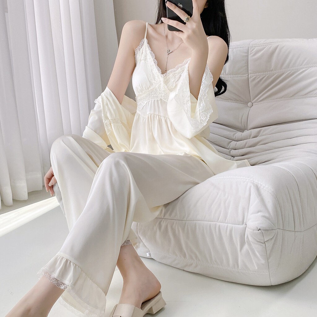 性感睡衣女冰丝纯欲风春夏季2025秋冬新款长袖吊带蕾丝胸垫家居服