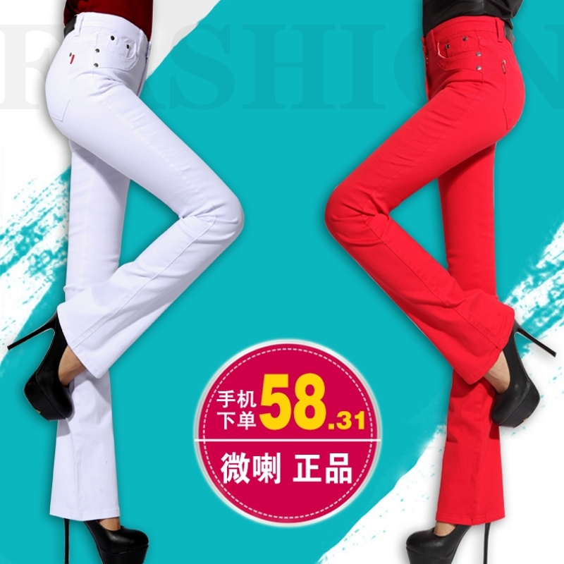 春夏显瘦高腰弹力大码微喇裤牛仔裤女裤喇叭裤女士休闲直筒长裤子