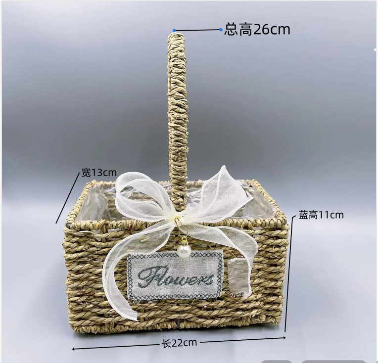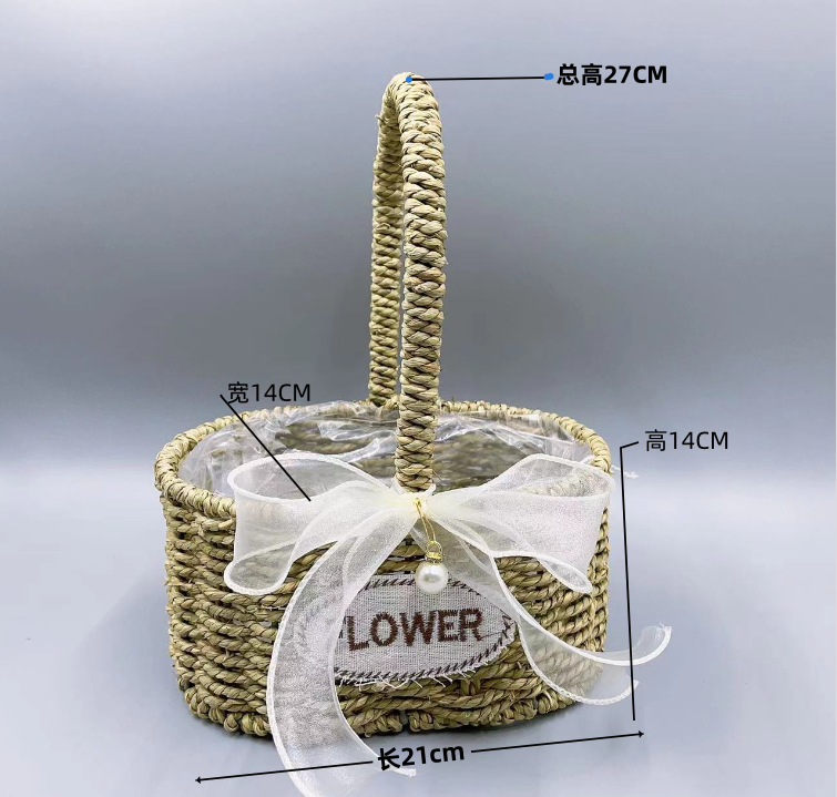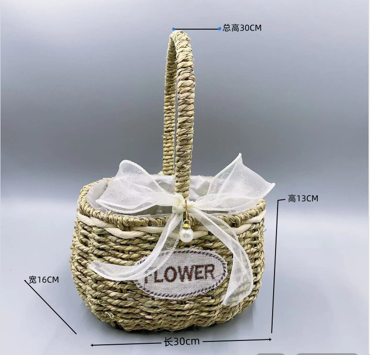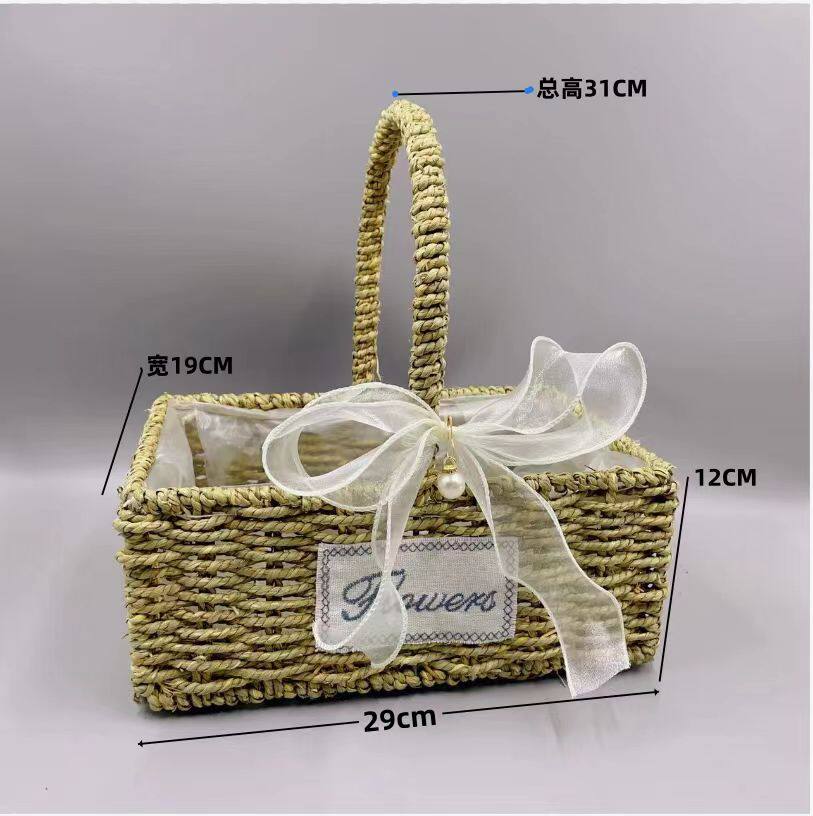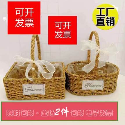 花篮草编藤编竹编织鲜花花童干花道具插花摆件水果月子鸡蛋手提篮