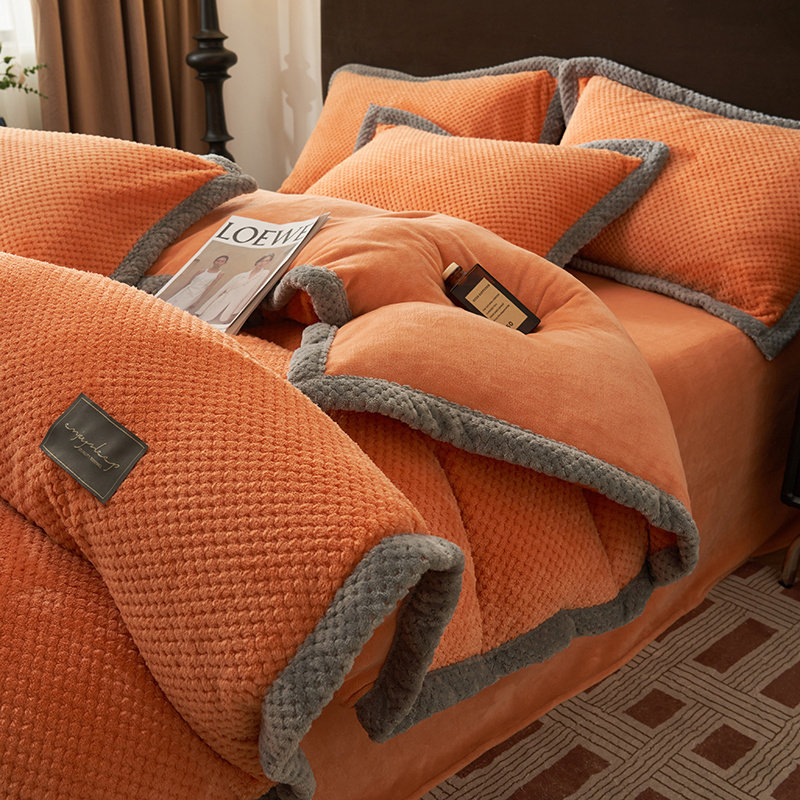 冬季牛奶绒被套单件加厚保暖珊瑚绒加绒被罩180x220床单三四件套
