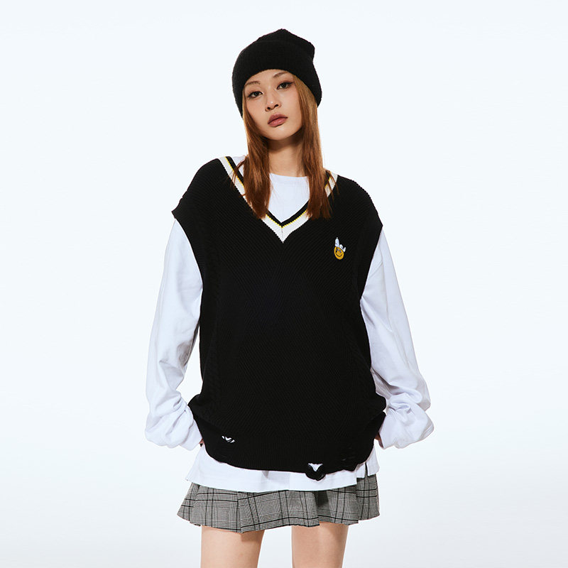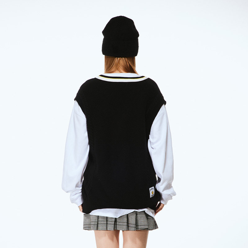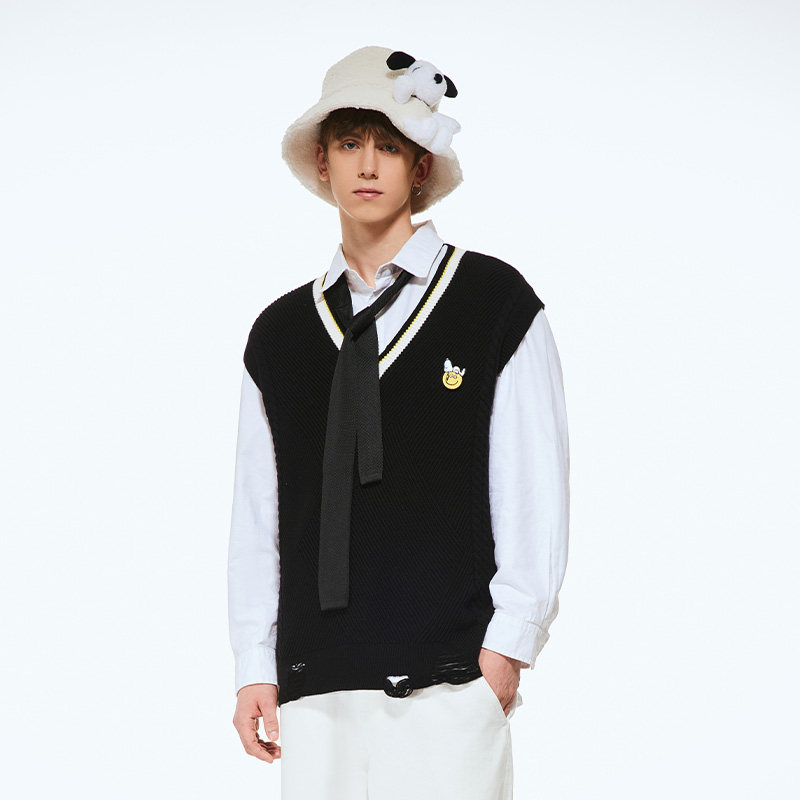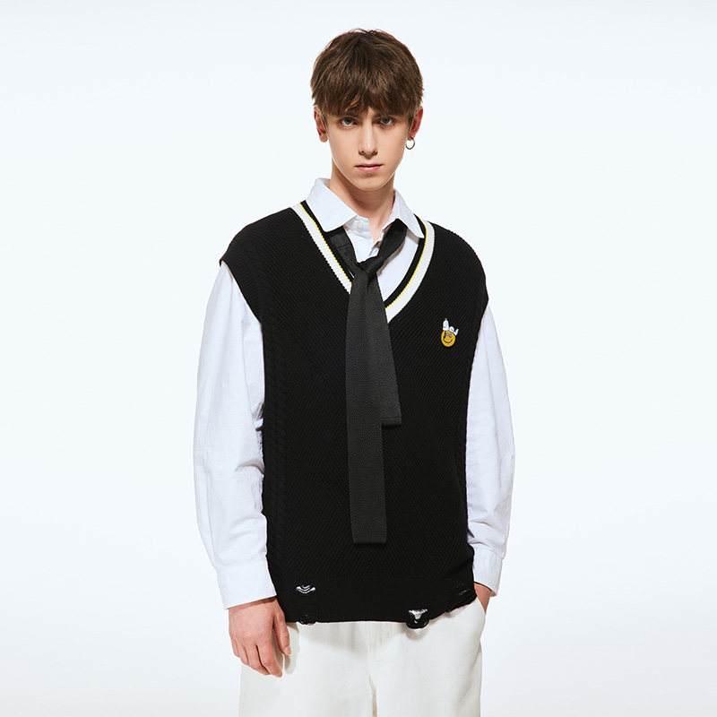 Fun潮牌V领马甲男女同款2025年冬季新款史努比联名休闲套头毛衣