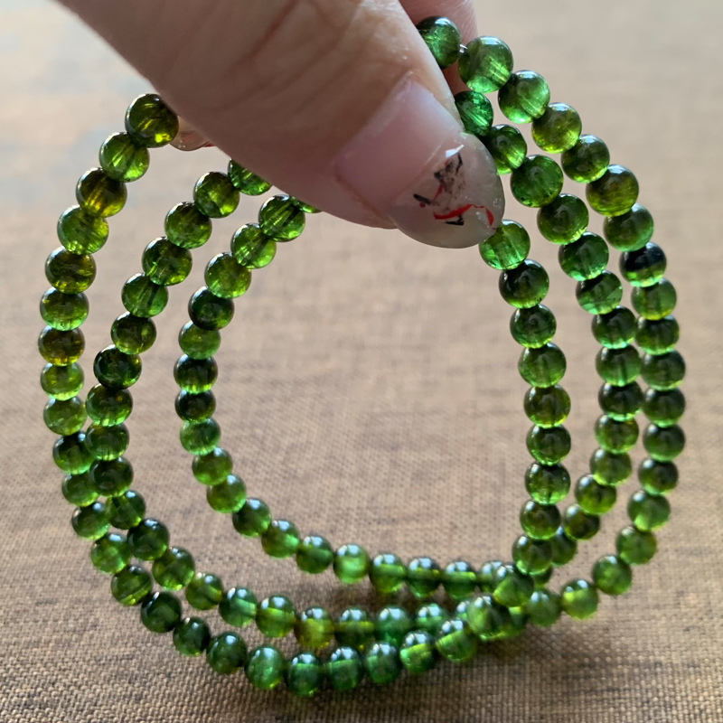 天然巴西黑糖绿碧玺三圈手链老矿祖母绿彩宝石饰品情侣款送礼物女