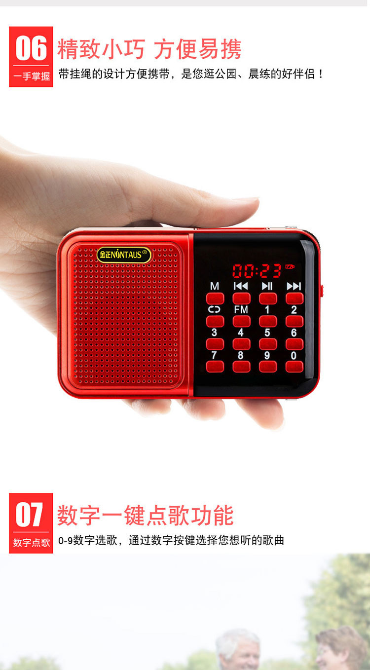 金正老年人粤语歌曲听戏收音机小巧便携式随身听太极晨练播放器
