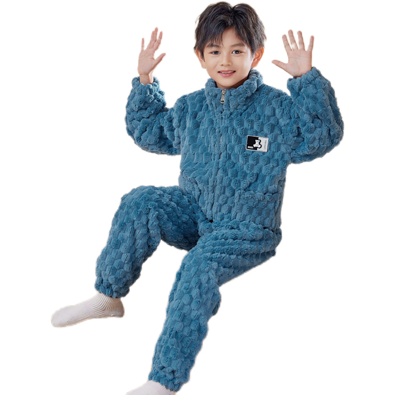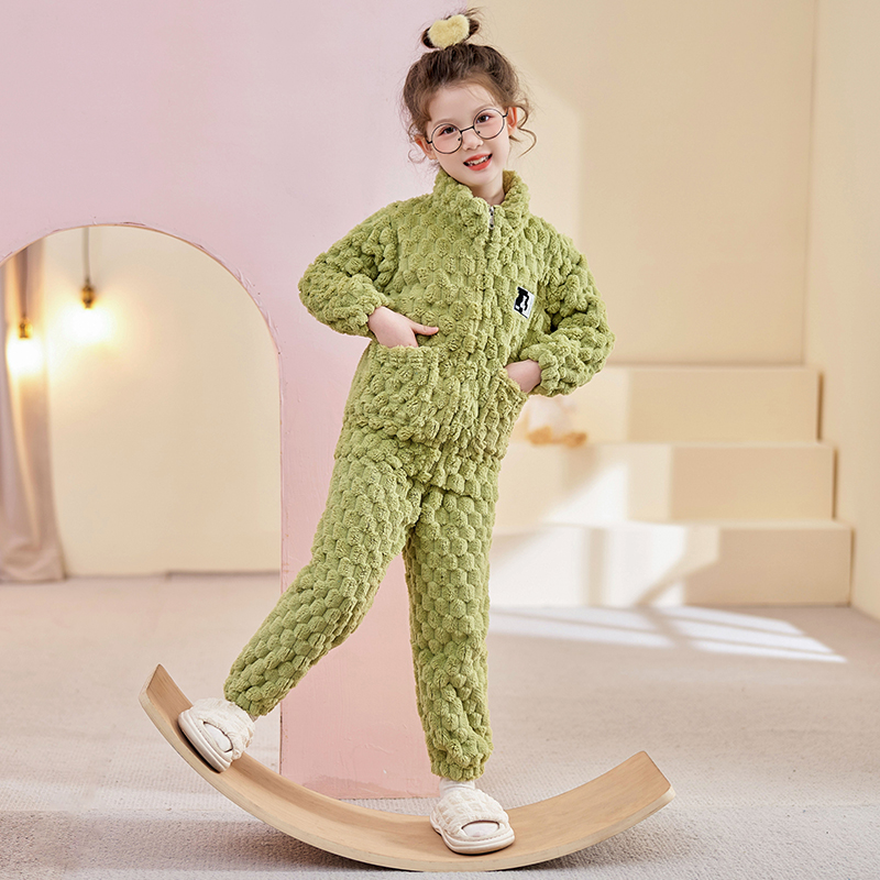 秋冬季女童宝宝套装儿童珊瑚绒睡衣男童加厚冬款法兰绒男孩家居服