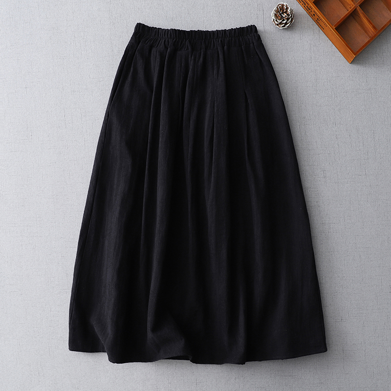 文艺复古棉麻半身裙女春装宽松显瘦休闲中长裙纯色高腰a字直筒裙