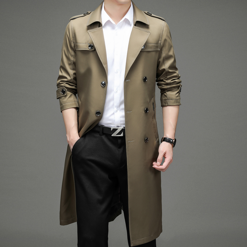 2025新款欧洲站大码春秋男装中年商务中长款风衣外套