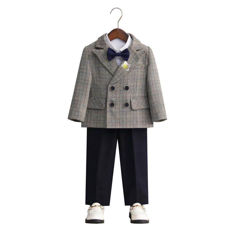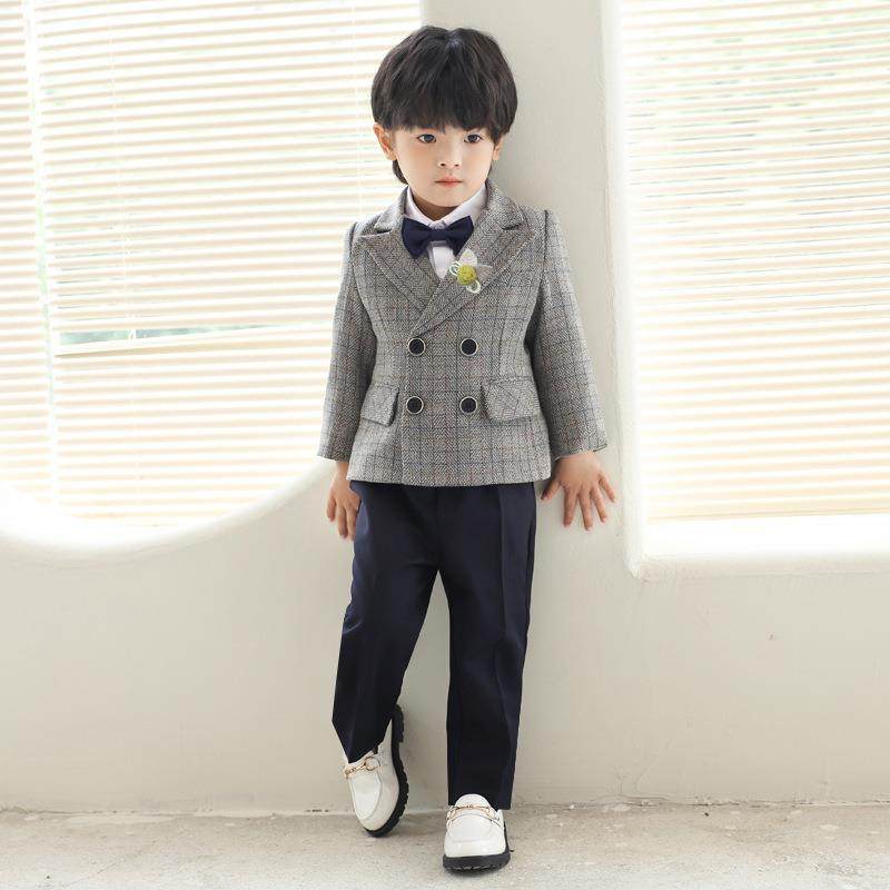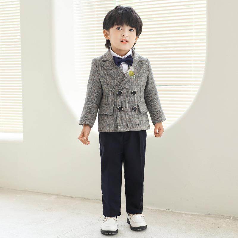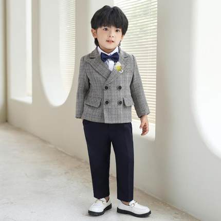 2026新款男童西装套装中小童花童婚礼服三件套周岁生日帅气西