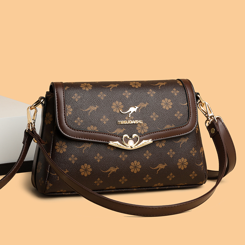 袋鼠专柜真皮单肩斜挎包女2025新款洋气牛皮妈妈包高级感生日礼物