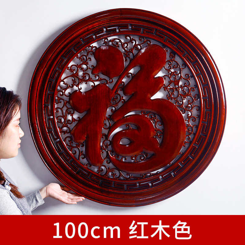 东阳玄关香樟工艺装饰品壁挂中式木挂件雕刻福字木雕圆形实木客厅