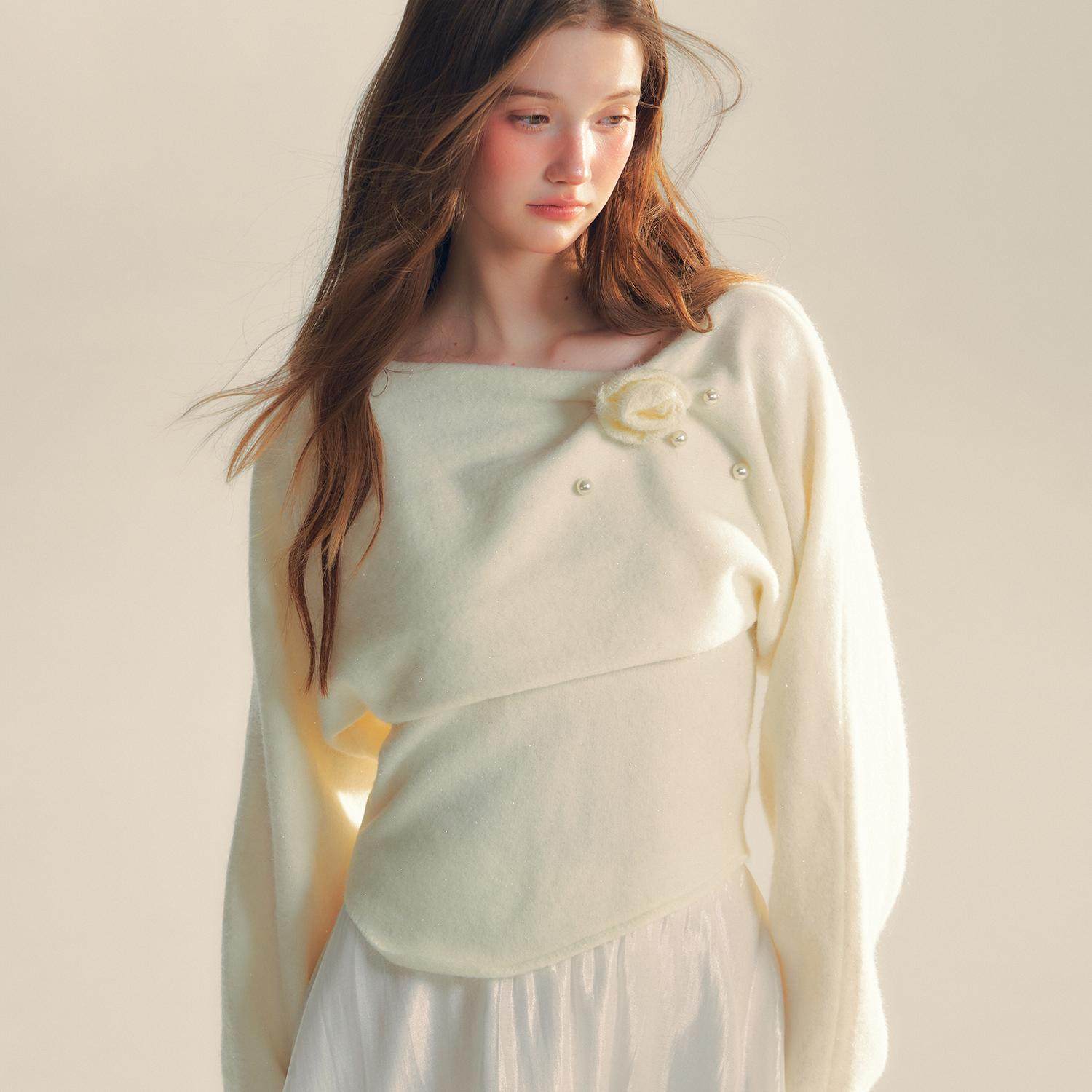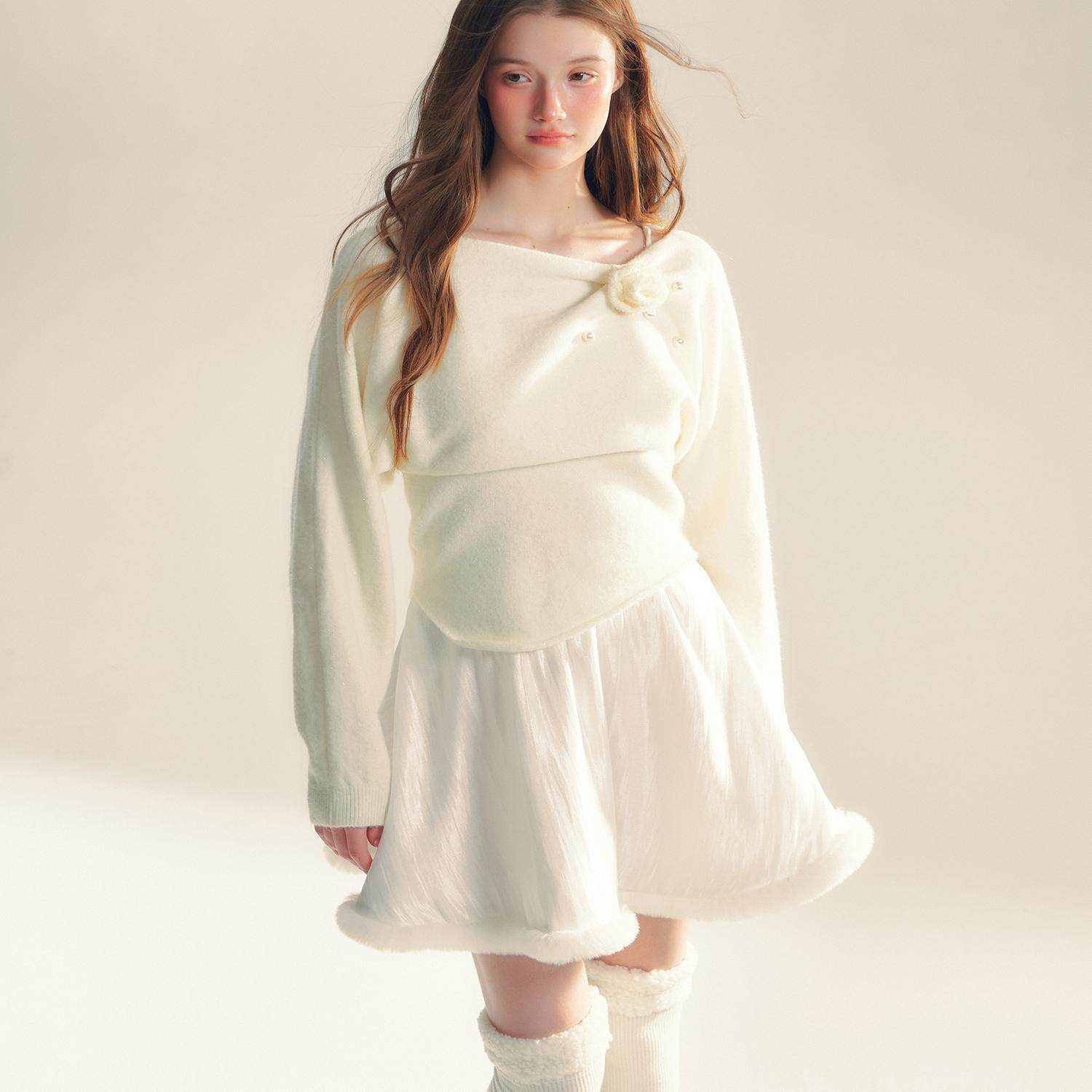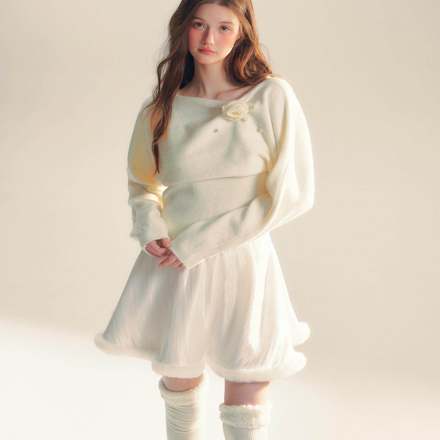 RECIT原创设计 玫瑰荡袖针织毛衣女冬季蝙蝠袖外搭+吊带真两件套