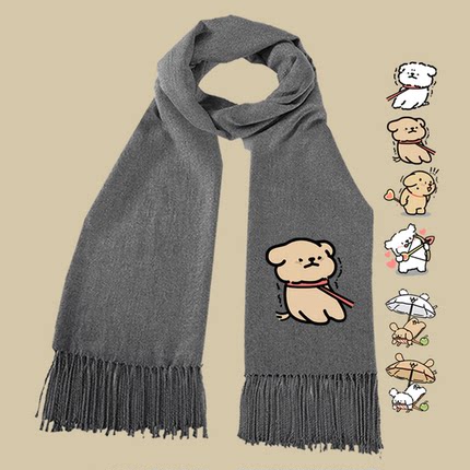 马尔济斯线条小狗周边男女情侣学生卡通休闲定制围脖披肩保暖围巾