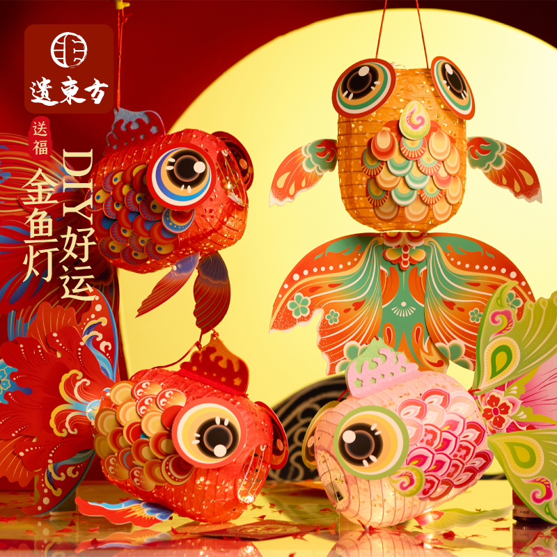 新年春节元旦马年手工diy好运金鱼灯材料包灯笼非遗手提花灯儿童