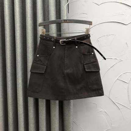 咖啡色高腰西装料短裙女显瘦秋冬时尚百搭减龄A字打底工装半身裙