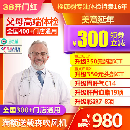 美年大健康高端父母爸妈中老年体检套餐北京上海等全国门店通用