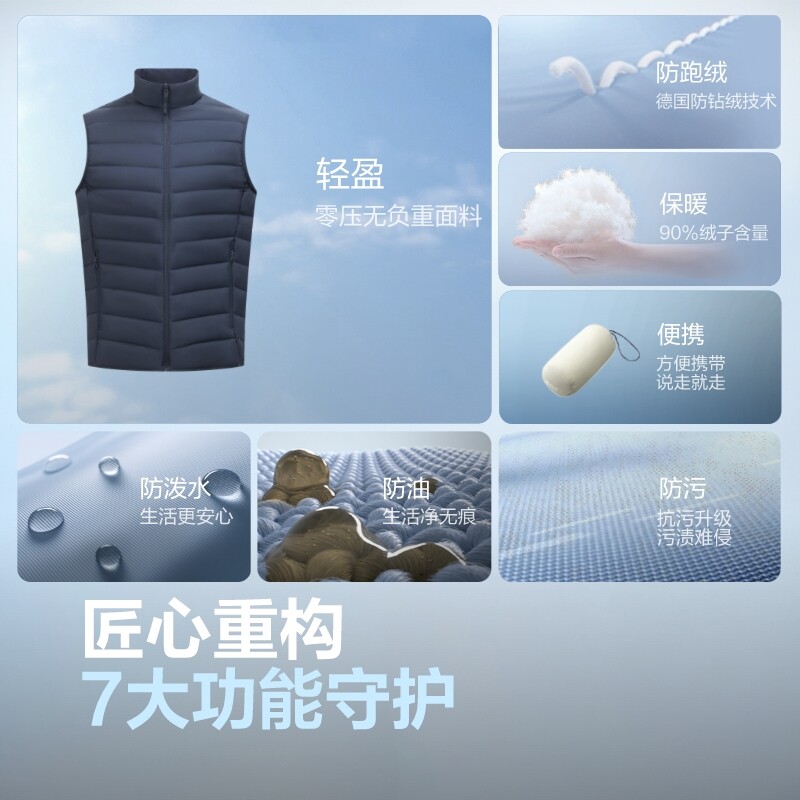 【交个朋友】波司登2025秋季新款男短款轻薄羽绒马甲保暖立领百搭