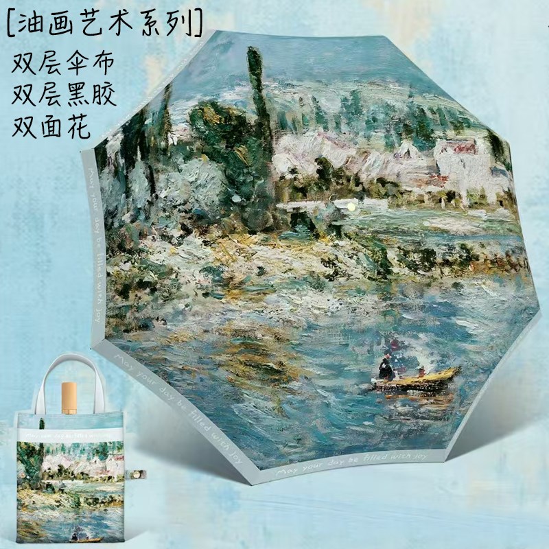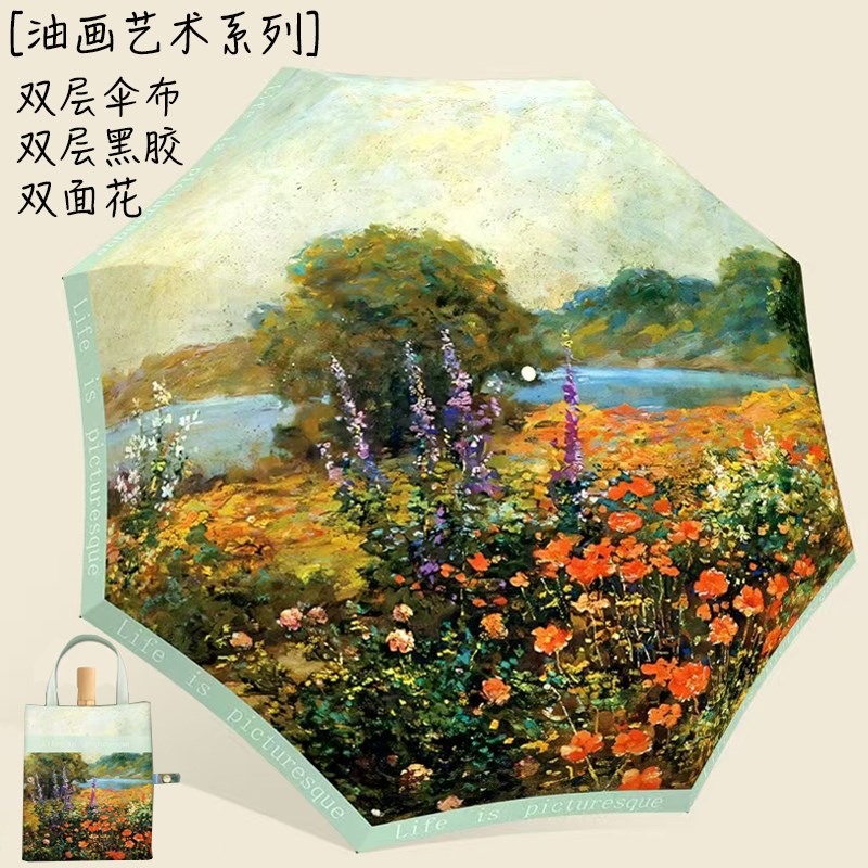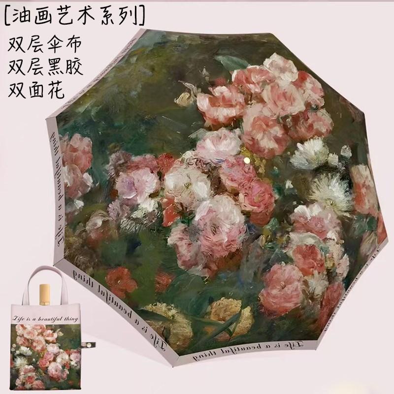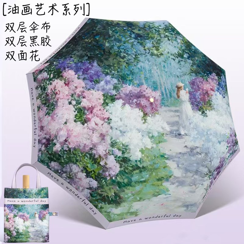 三折双面油画太阳伞双层黑胶w遮阳防晒防紫外线折叠雨伞女晴雨两