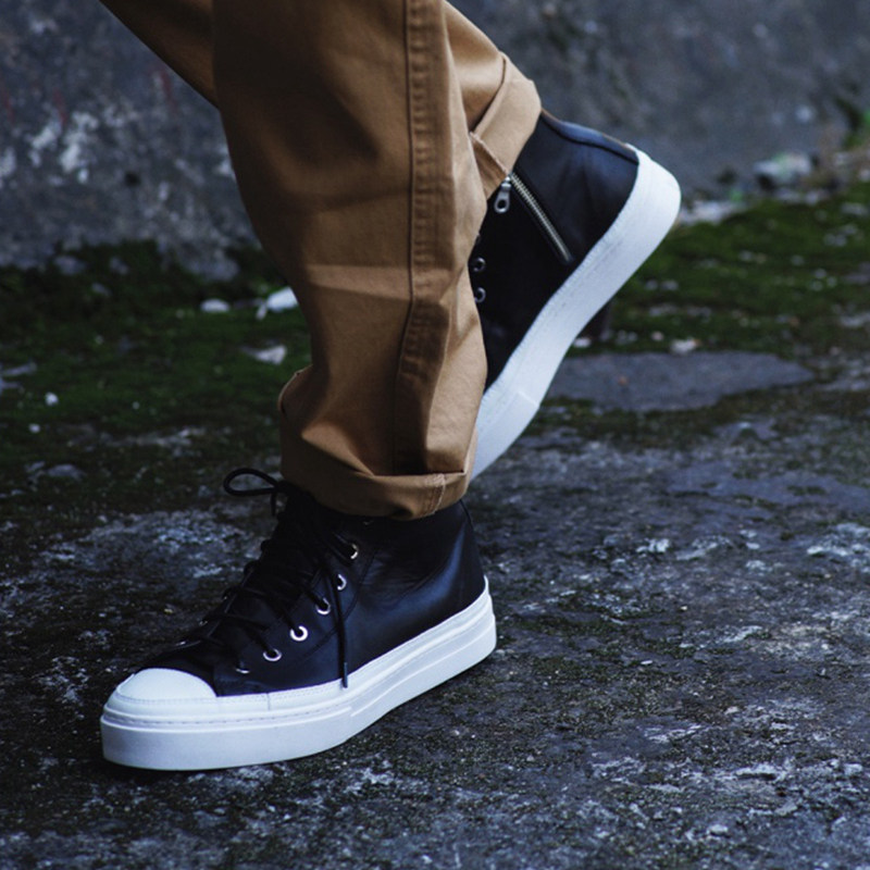 BLESS SHOE B7 CLASSIC ZIP黑色全皮高帮休闲板鞋 侧拉链男女鞋
