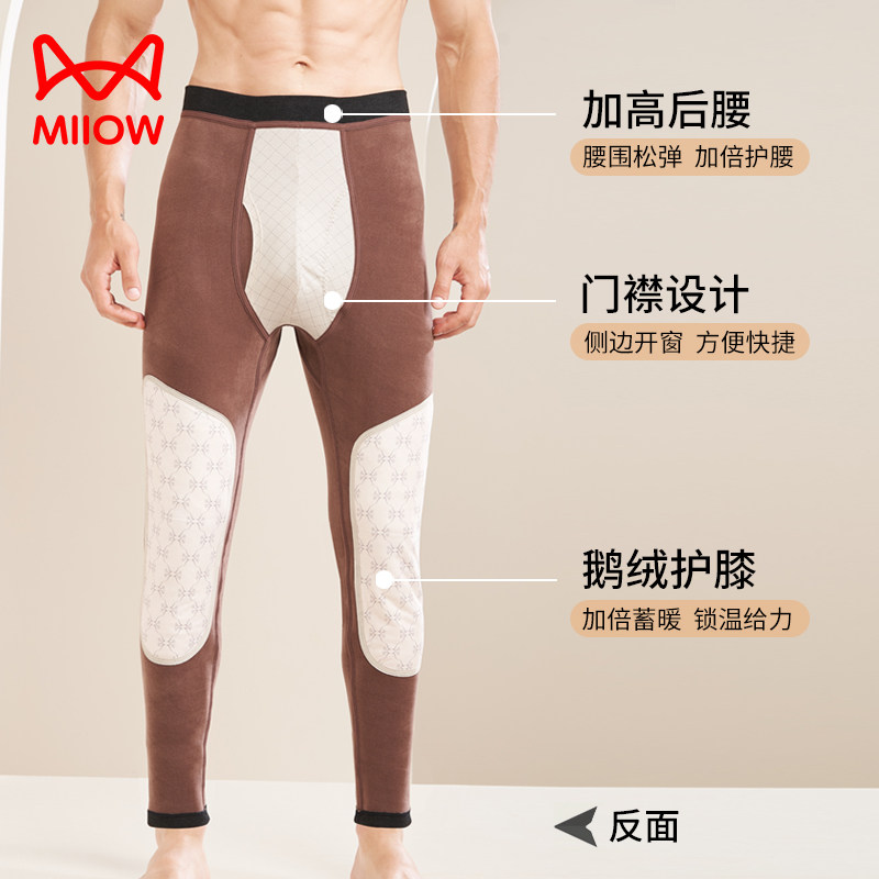 猫人男士保暖裤羽绒护膝加绒加厚中老年棉毛裤内穿打底绒裤秋冬