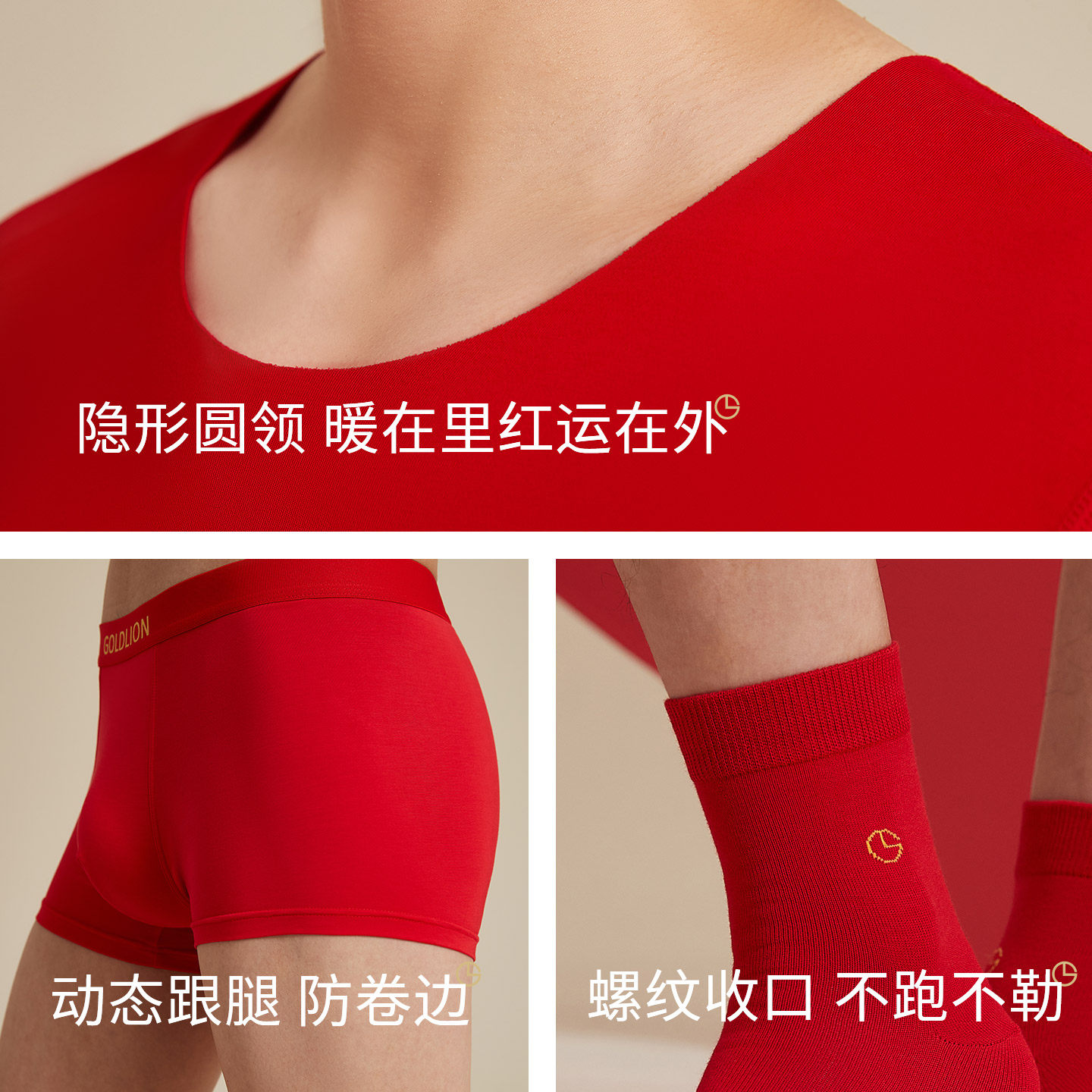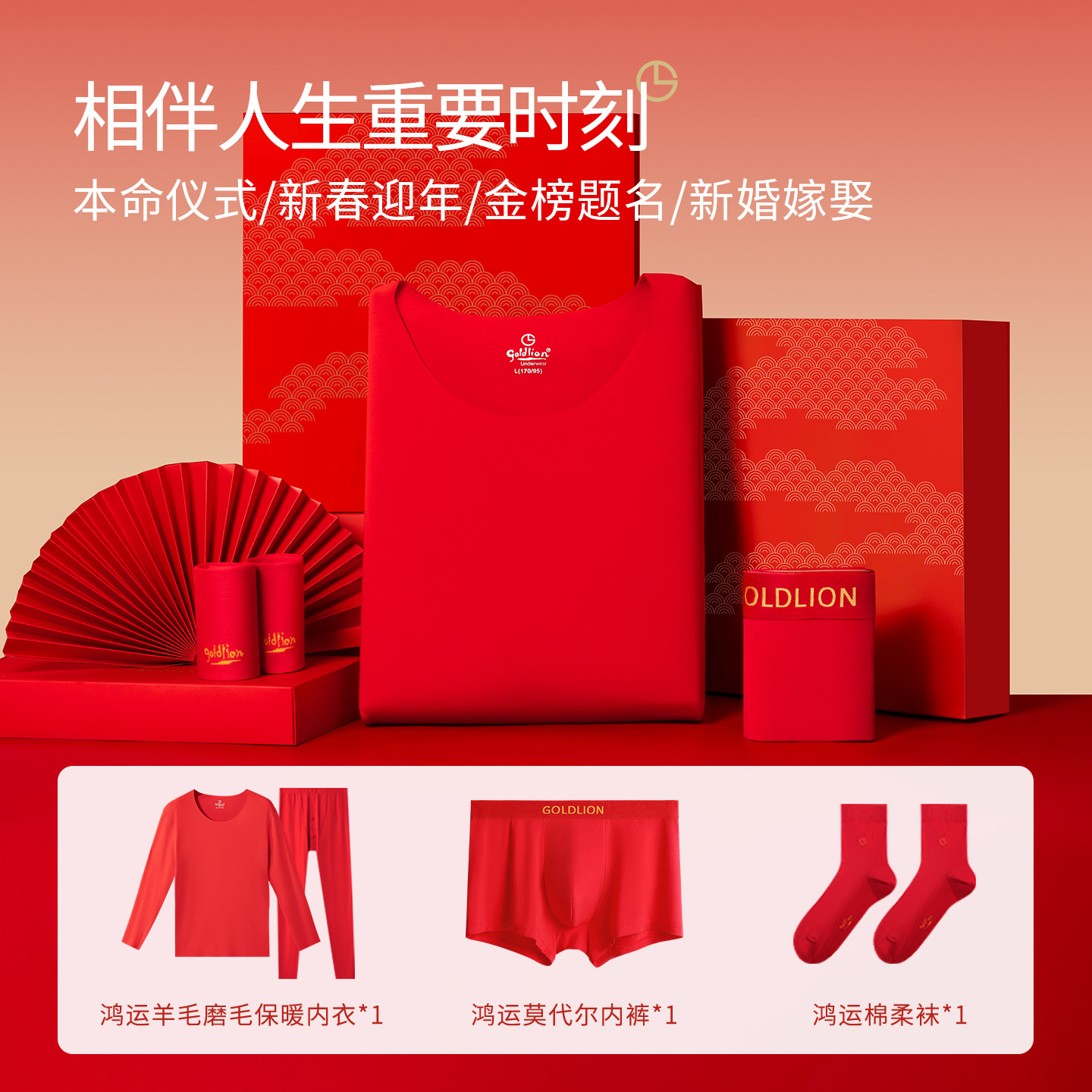 金利来本命年保暖内衣礼盒男装男士女士马年秋衣秋裤大红色套装