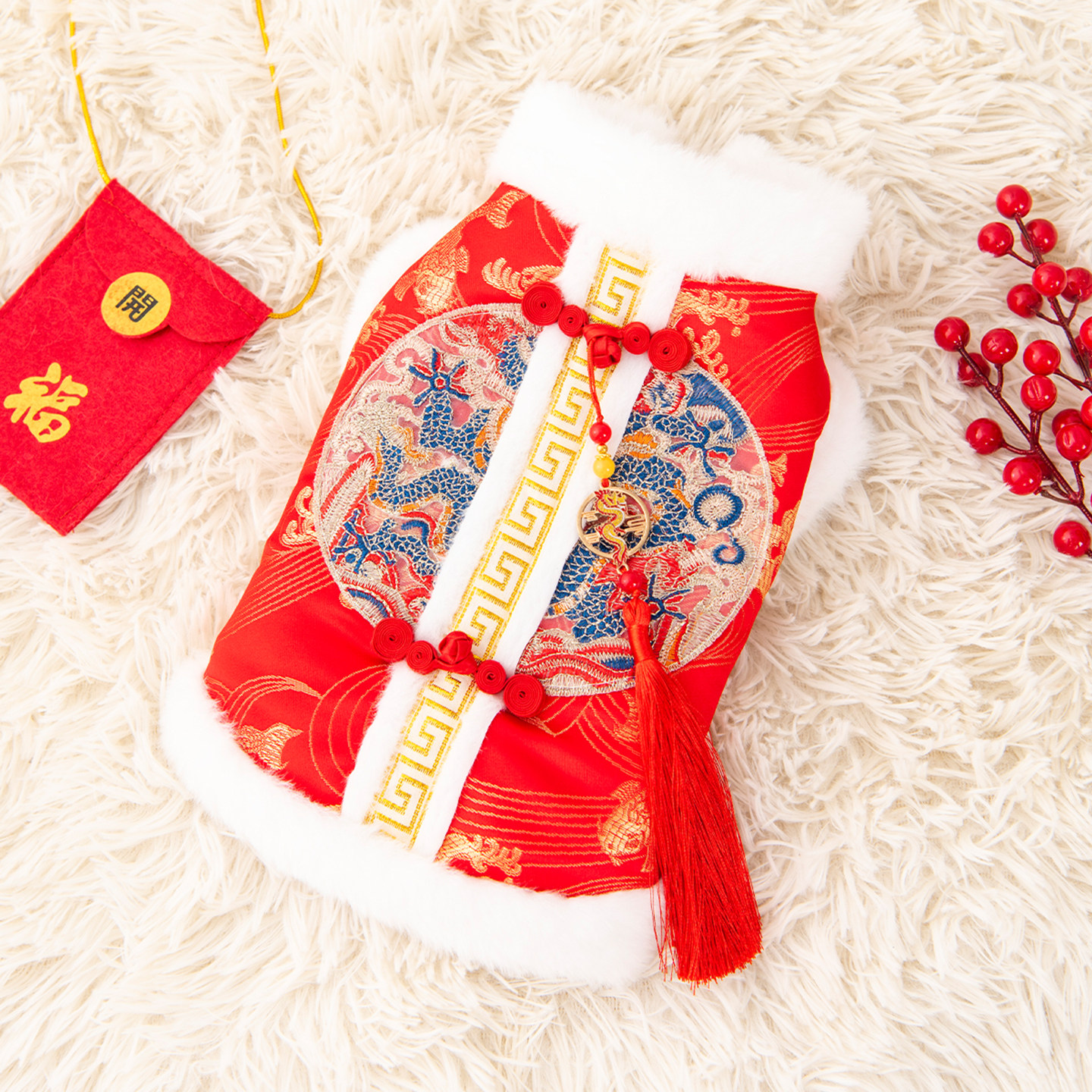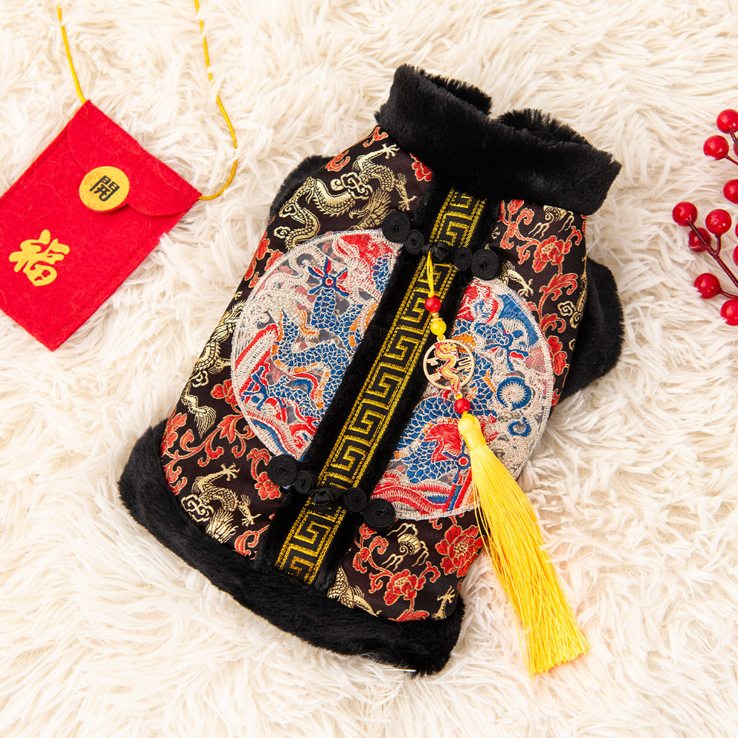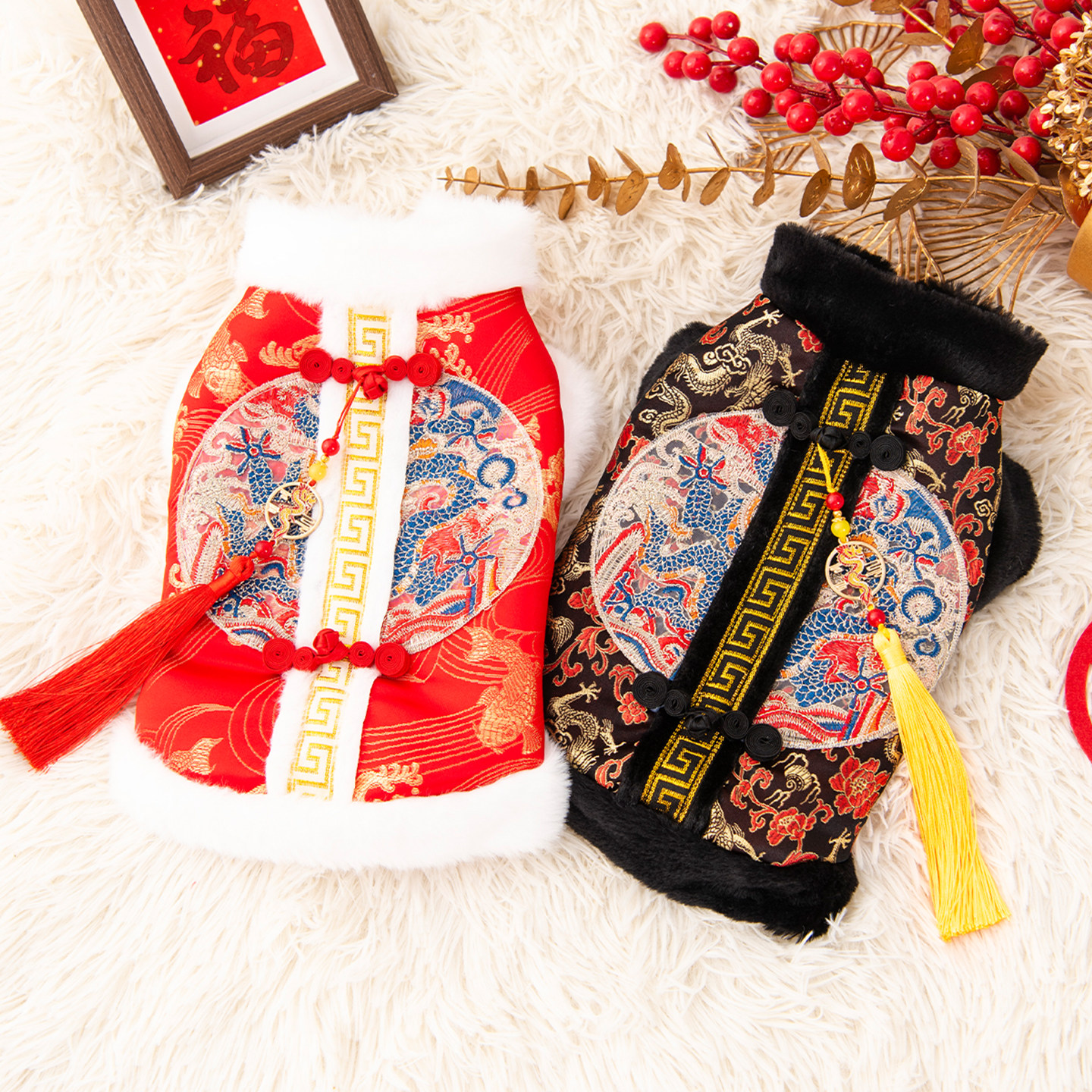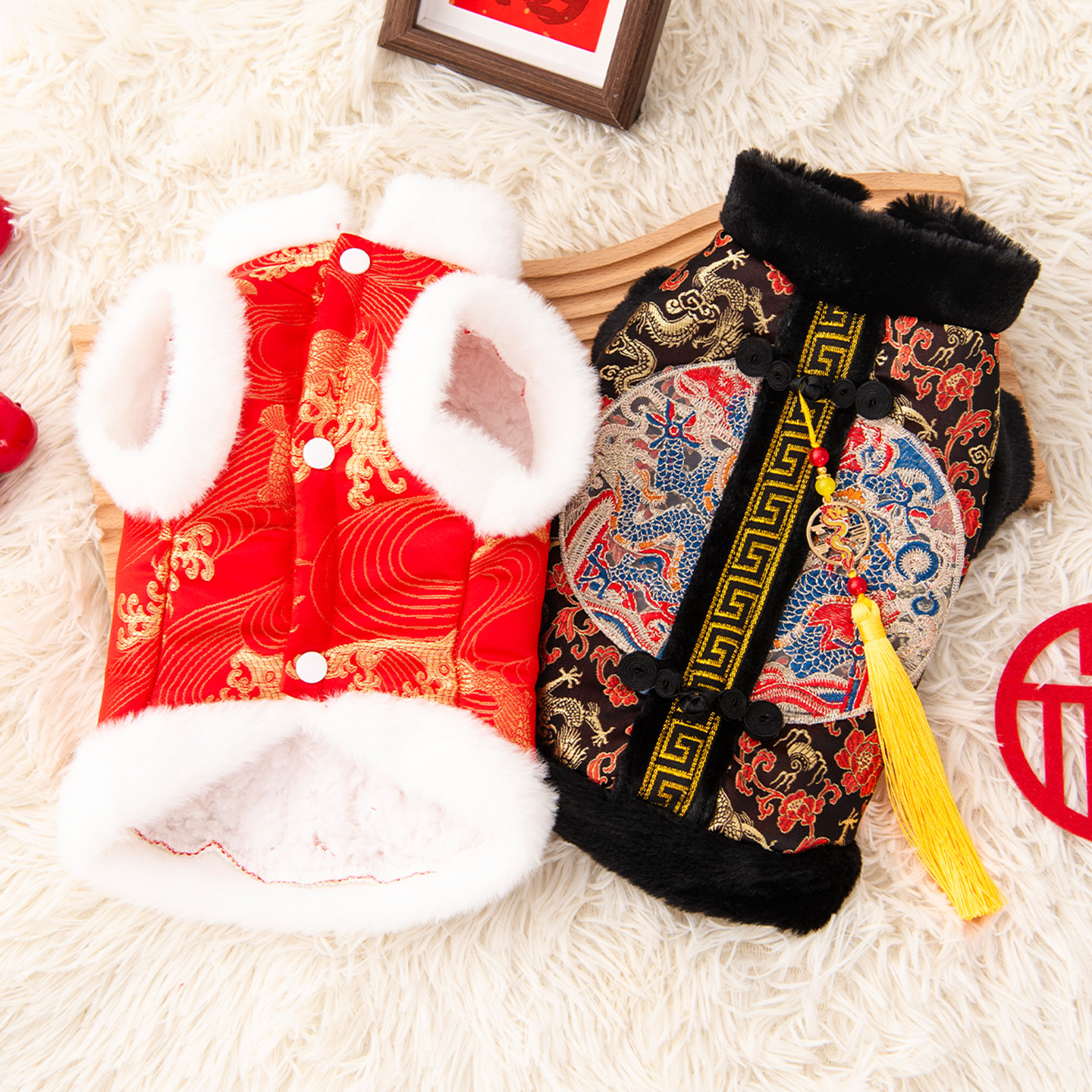 猫咪衣服冬季加厚中国风刺绣唐装拜年喜庆金渐层宠物狗狗过年衣服