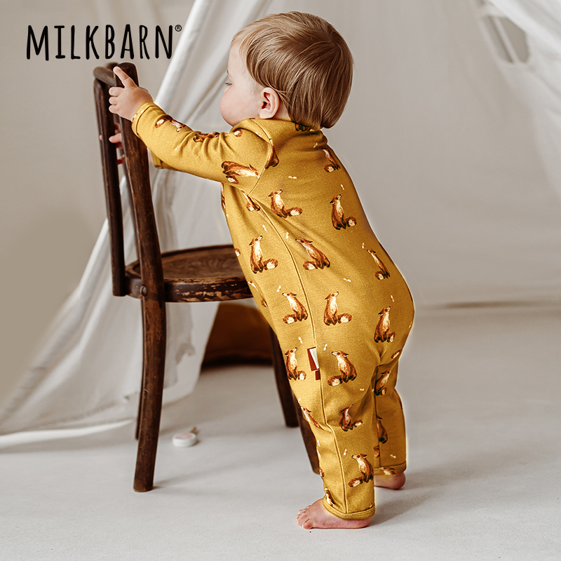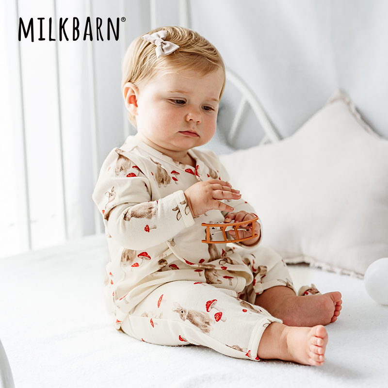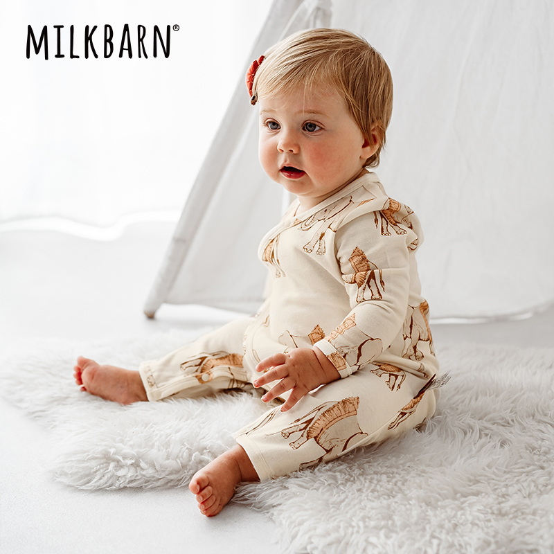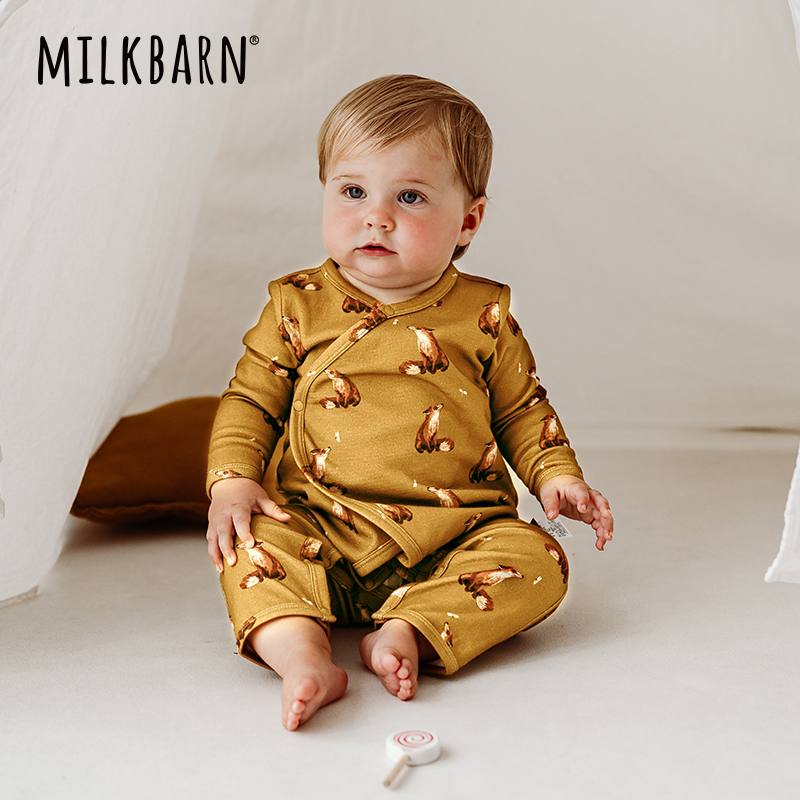 Milkbarn婴儿斜开襟连体衣服宝宝秋冬长袖哈衣新生儿爬服