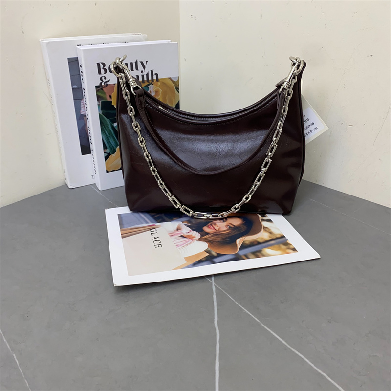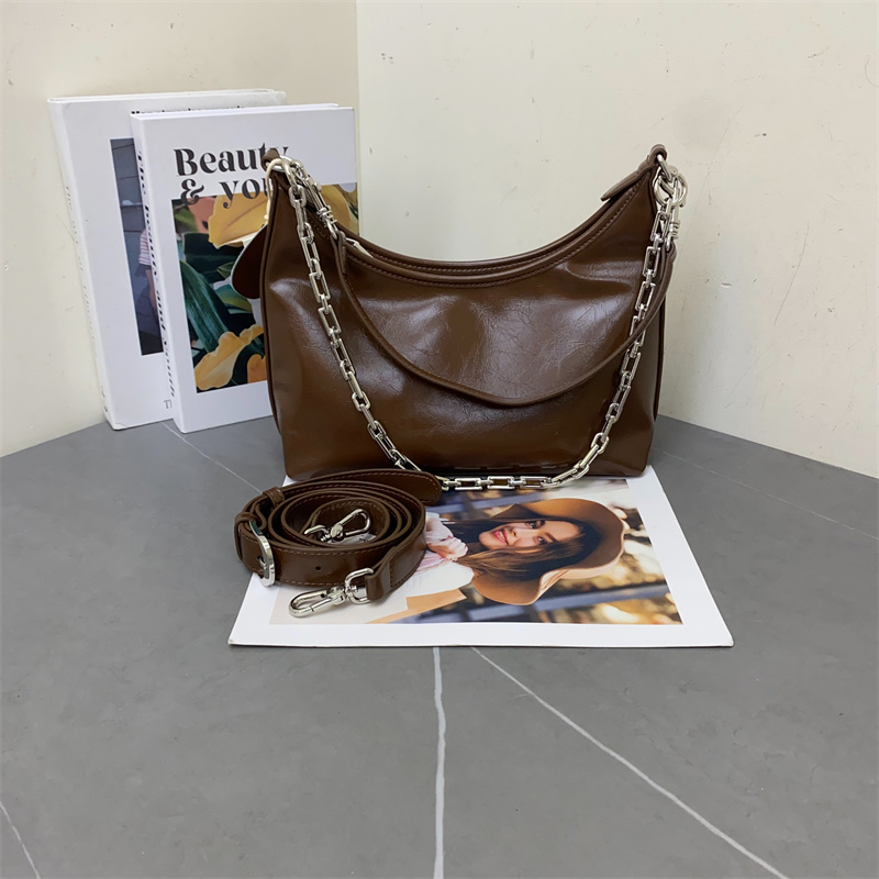 2025新款时尚油蜡皮水桶包质感百搭链子手提包休闲软皮单肩斜跨包