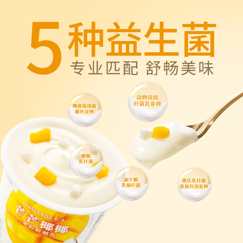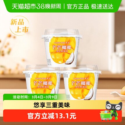【新品上市】卡士酸奶芒果清椰果粒鲜酪乳100g*3杯风味发酵乳