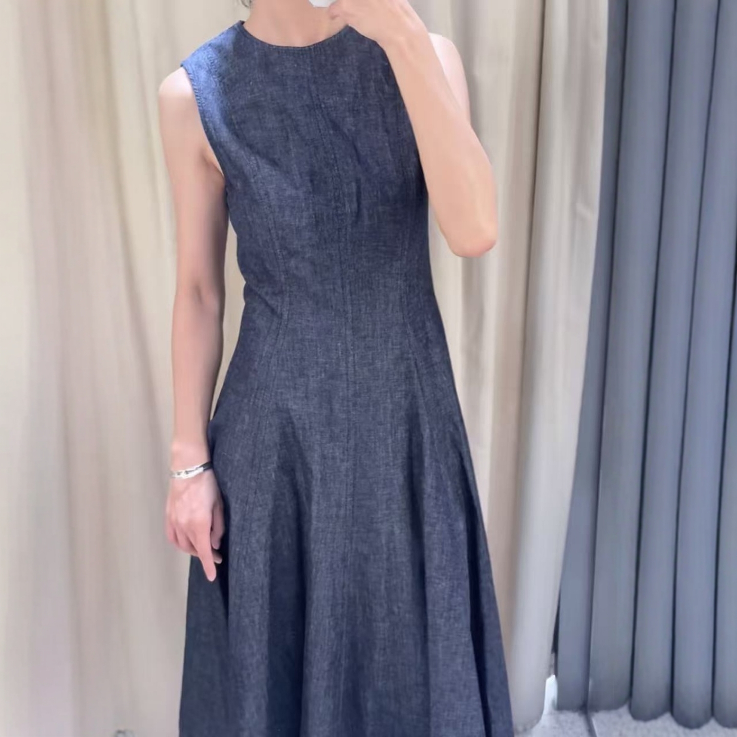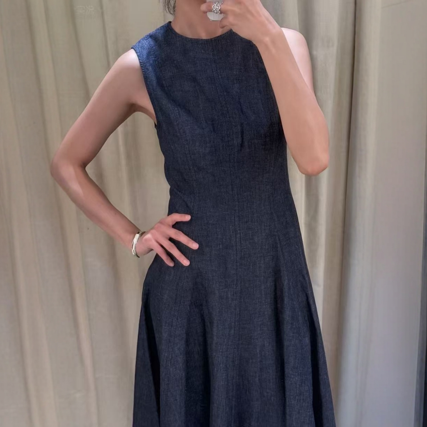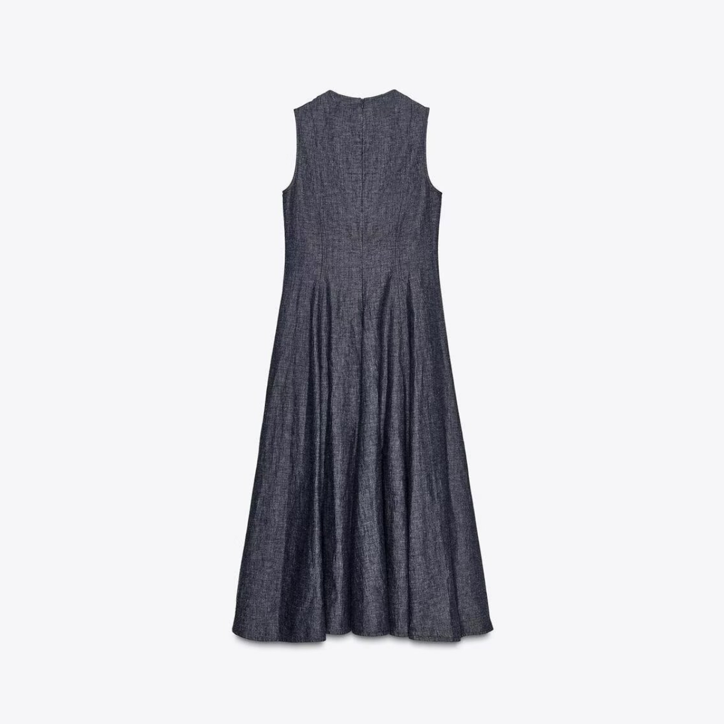 ZA外贸出口女装软质舒适背心式宽摆牛仔迷笛连衣裙7563243