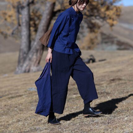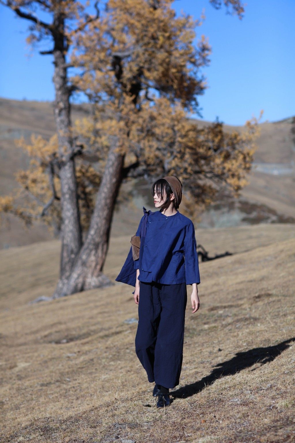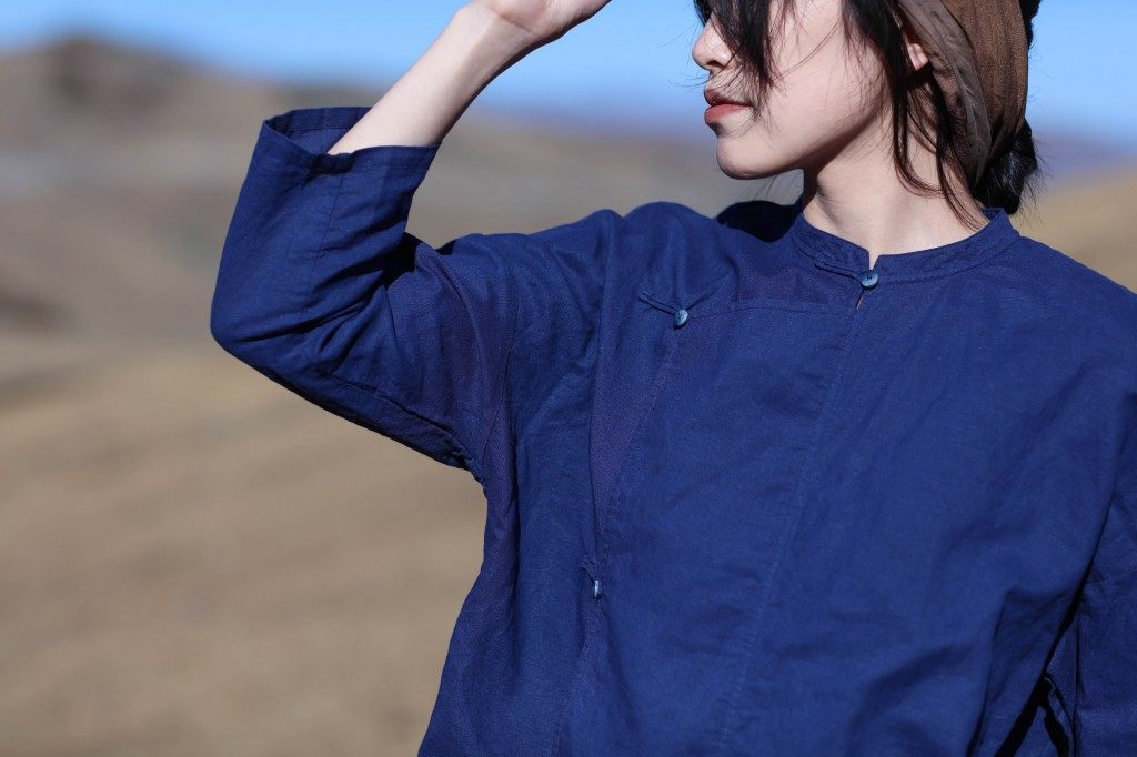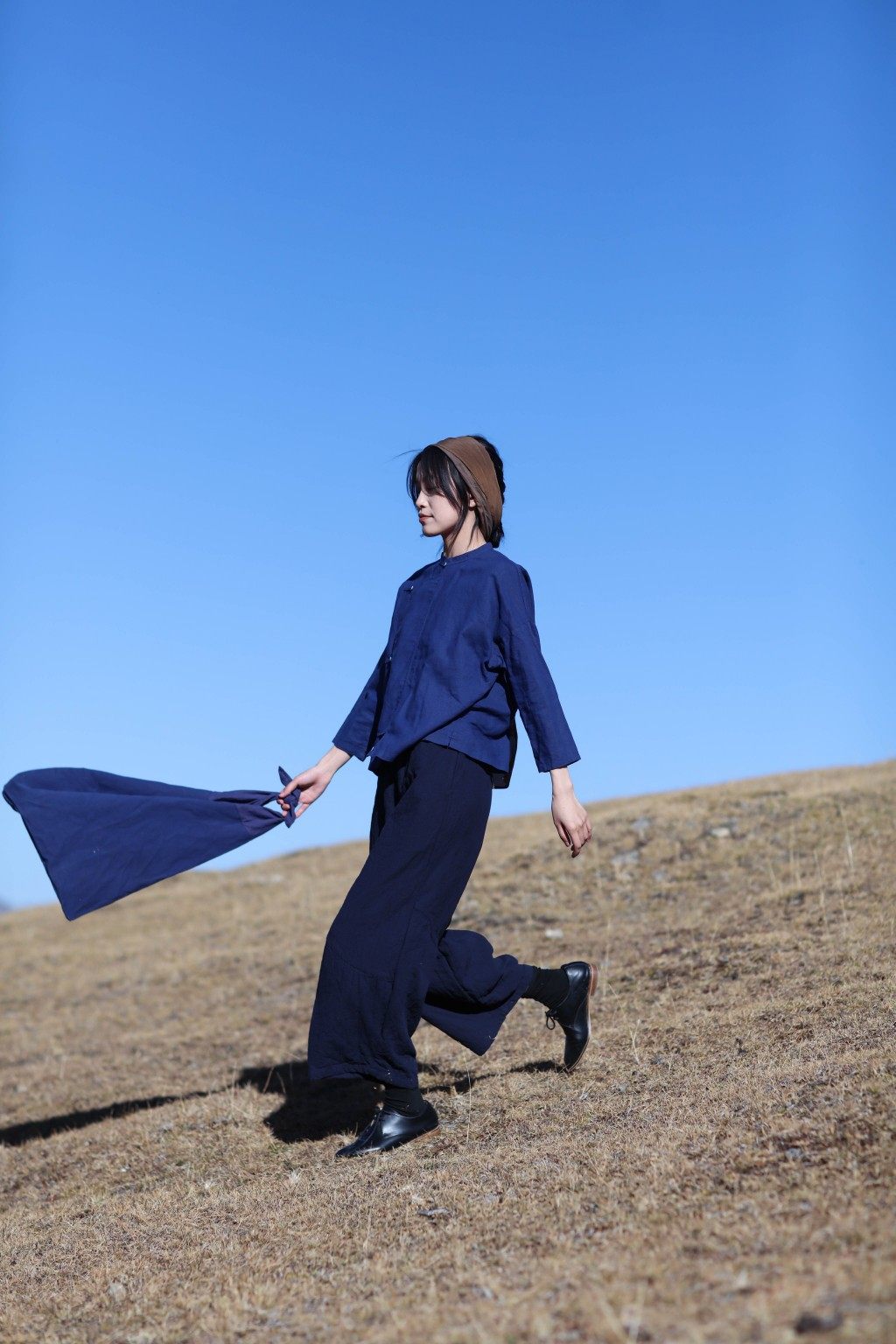 大拙穿它青春女高那味有了苎麻立领简约通勤纯色宽松型衬衫210907