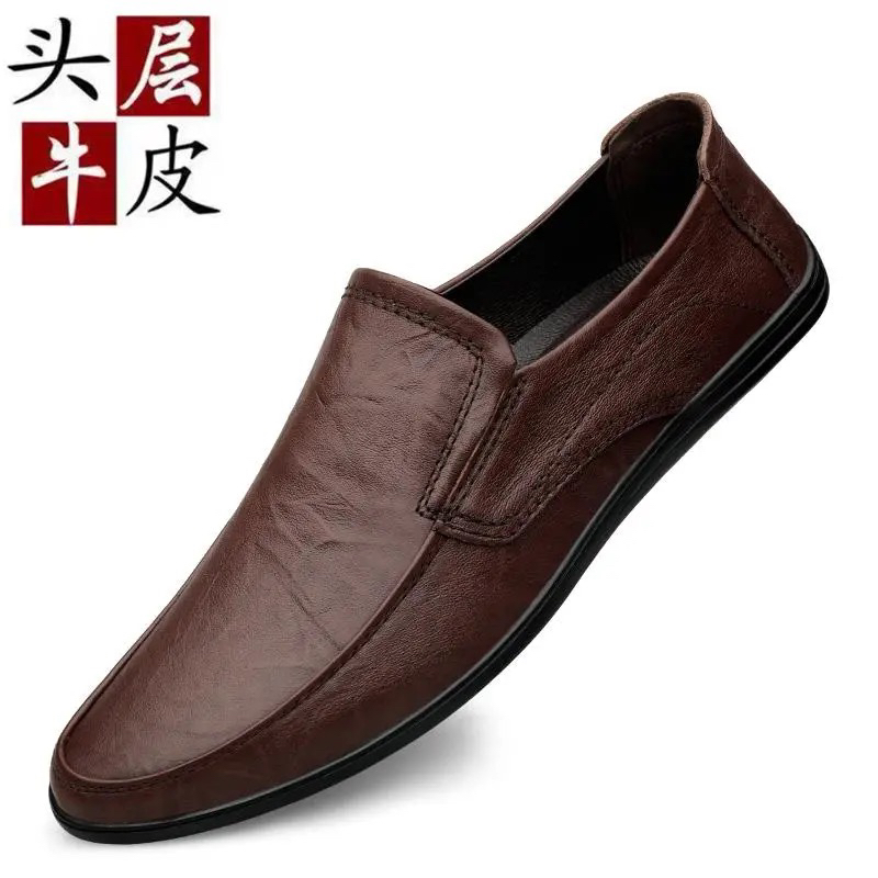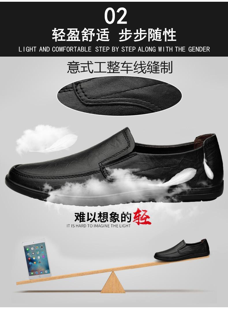 新款真皮头层牛皮软皮春秋季商务休闲鞋软底防滑豆豆鞋男鞋一脚蹬